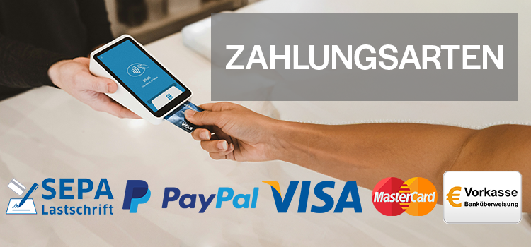 Es gibt verschiedene Zahlungsmöglichkeiten, die den Einkauf einfach und sicher machen. PayPal ermöglicht schnelle Zahlungen ohne Eingabe von Bankdaten.