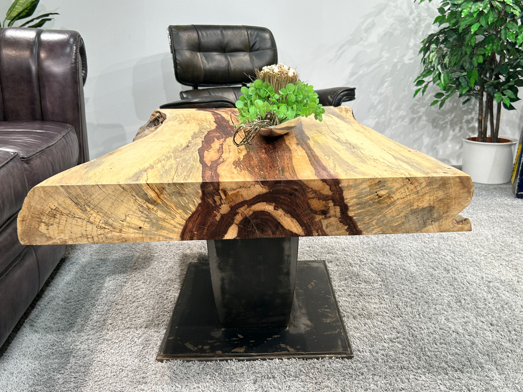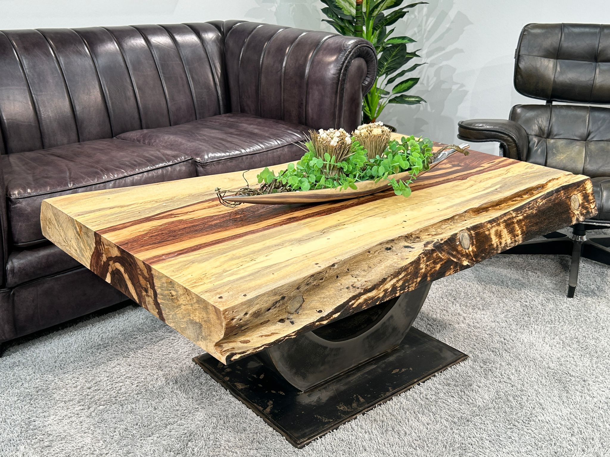 Baumstamm Couchtisch Tamarind 120 cm mit Tischgestell aus Stahl