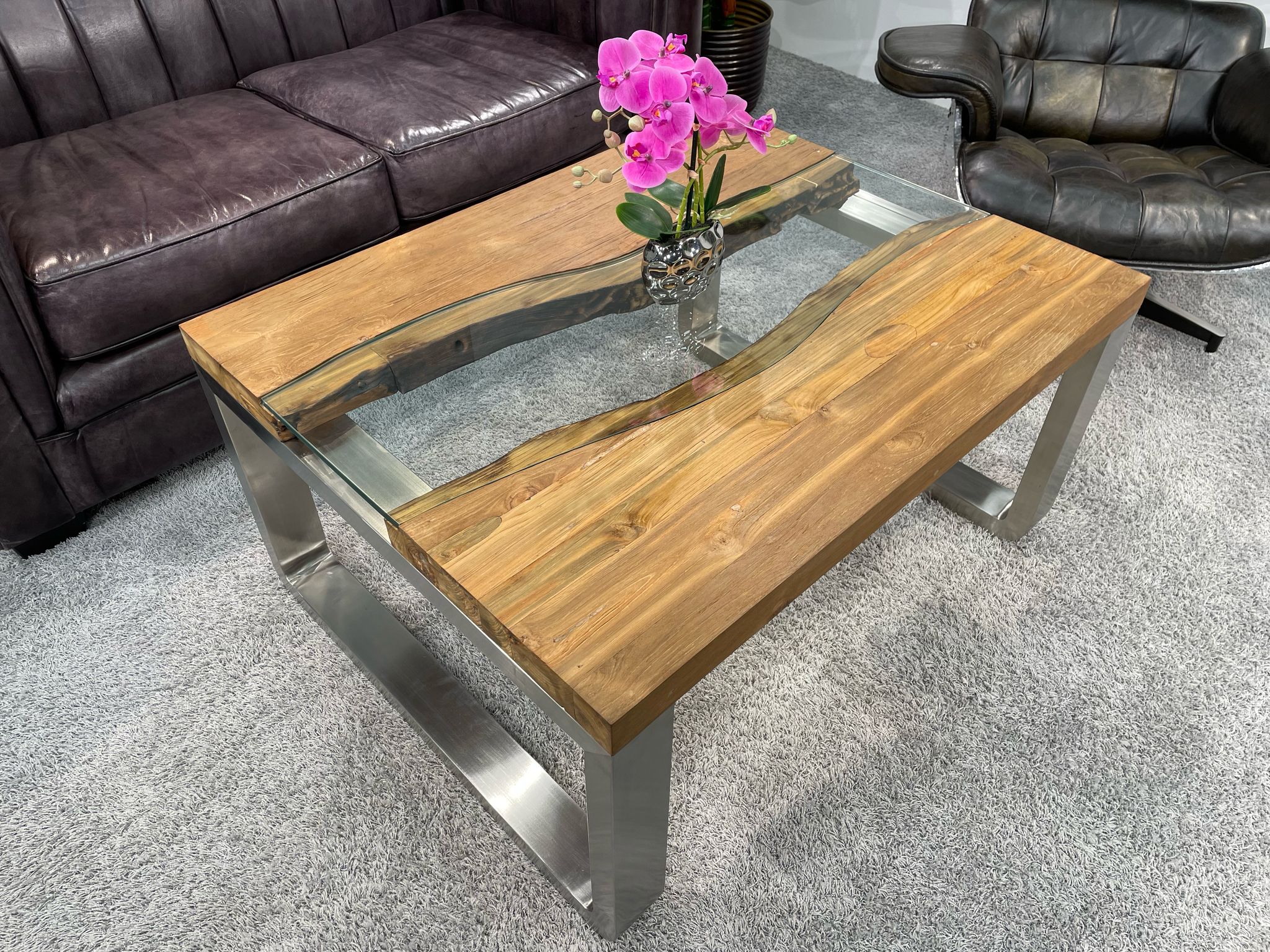 Flusslauf-Design mit handgefertigter Glaseinlage |