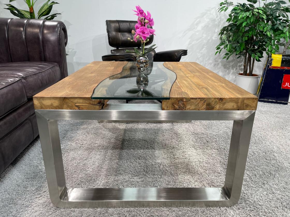 Beispiel: Couchtisch "Elements" aus recyceltem Teak im Format 120 x 80 cm