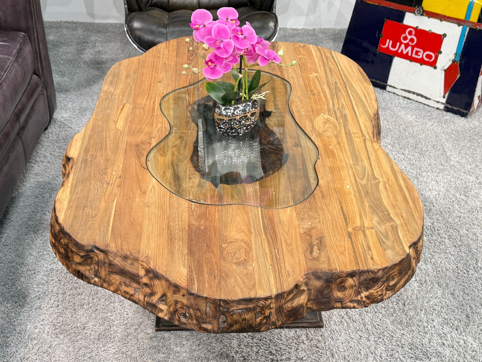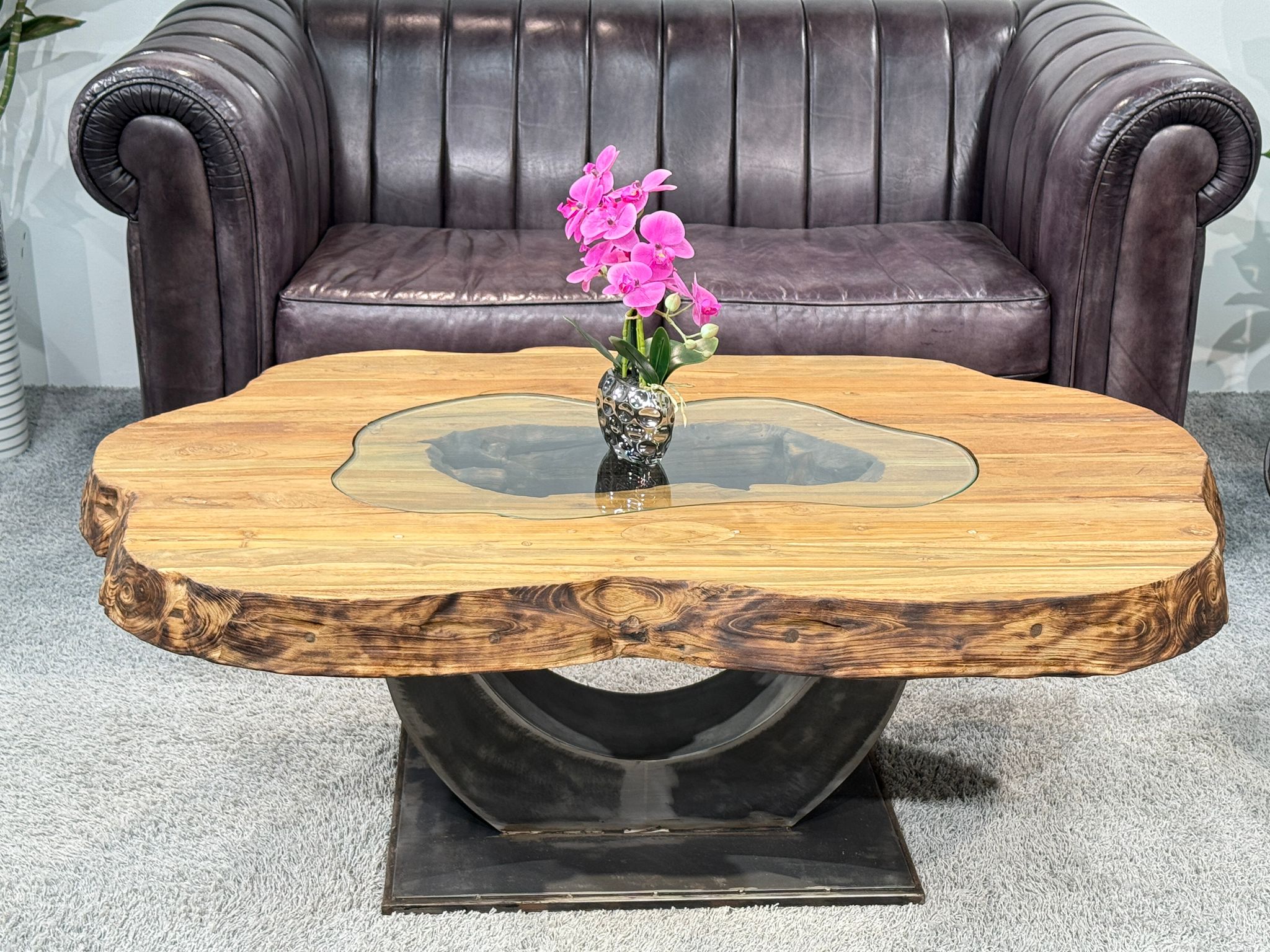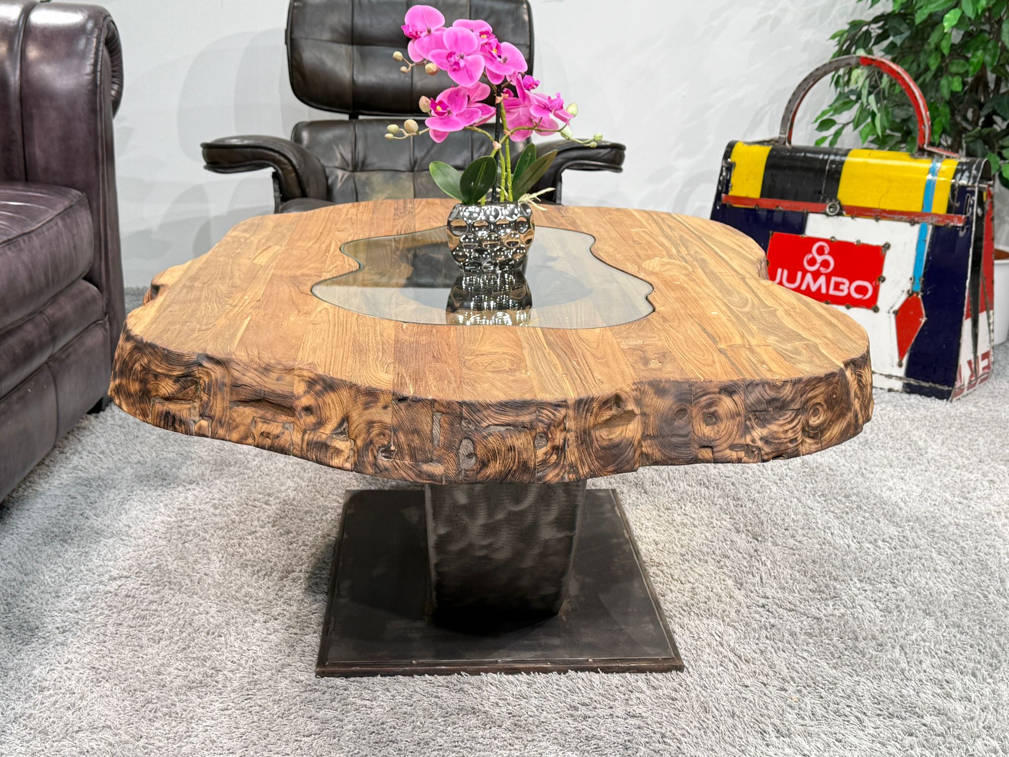 Extravaganter Couchtisch aus der Serie Fusion – Handgefertigtes Unikat aus massivem Altholz