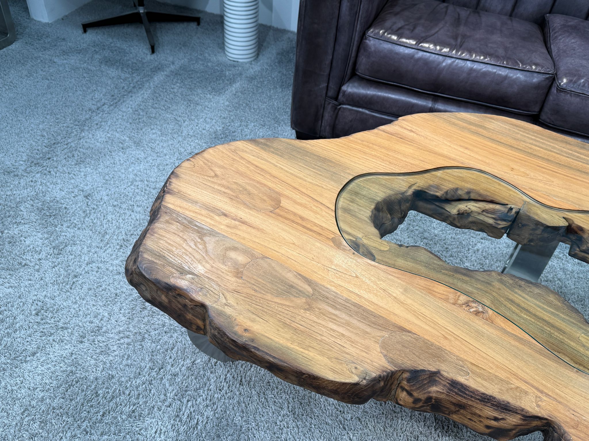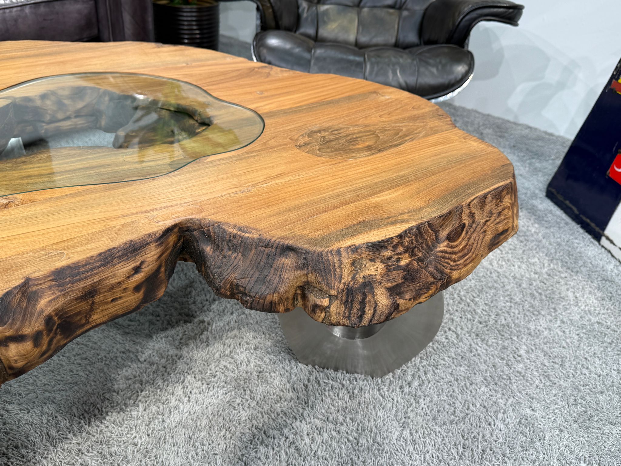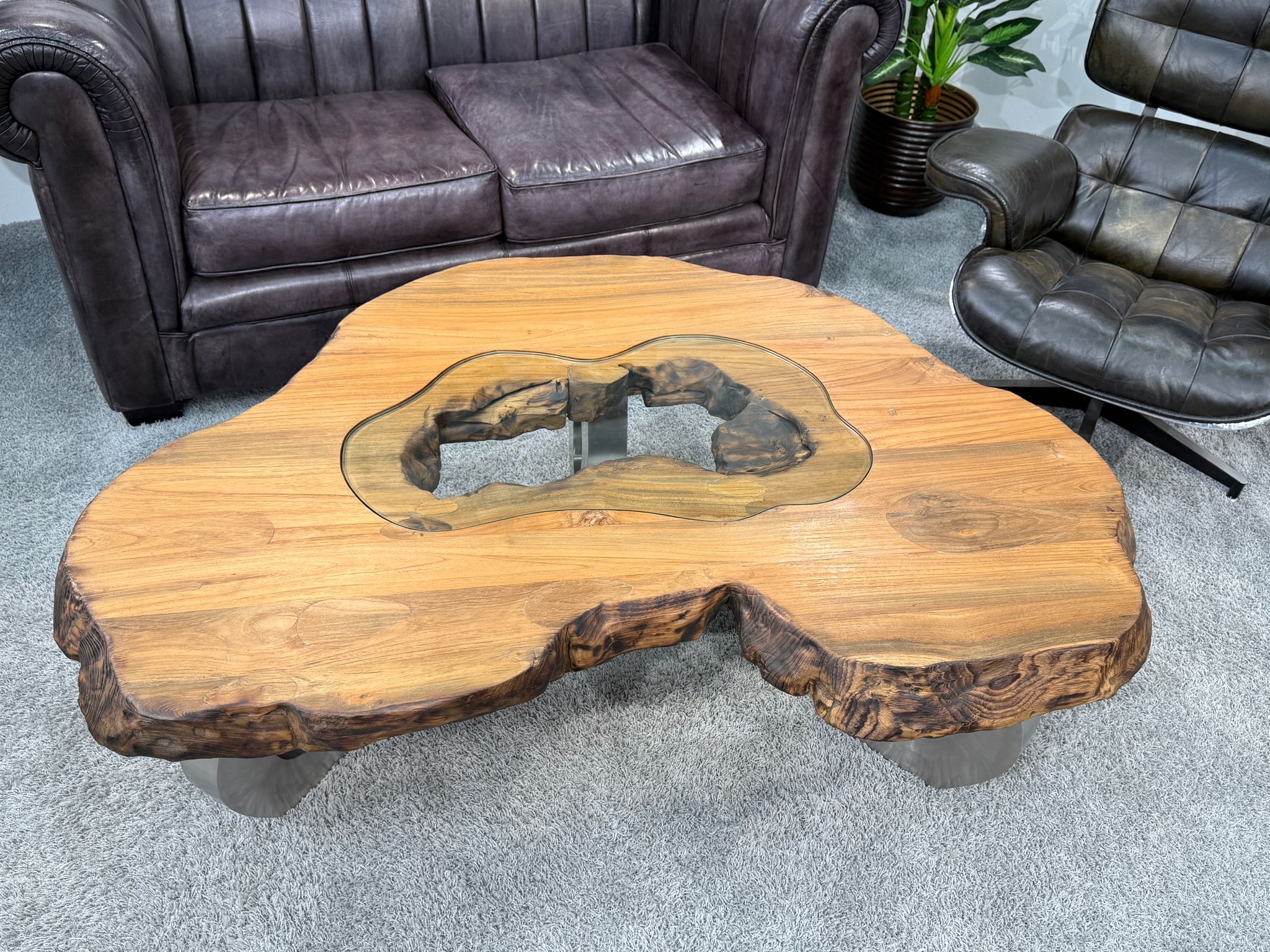 Format: Form organisch, Länge ca. 145 cm, Breite ca. 93 cm, Höhe ca. 46, Stärke der Tischplatte ca. 8 cm