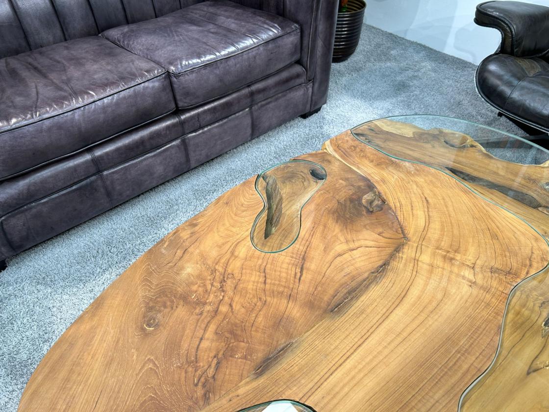 Dieser Baumtisch / Couchtisch eignet sich hervorragend für moderne wie auch rustikale Wohnkonzepte und ist mehr als nur ein Möbelstück – er bringt die Geschichte eines jahrzehntealten Baumstamms direkt in Ihr Zuhause.