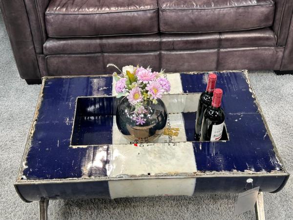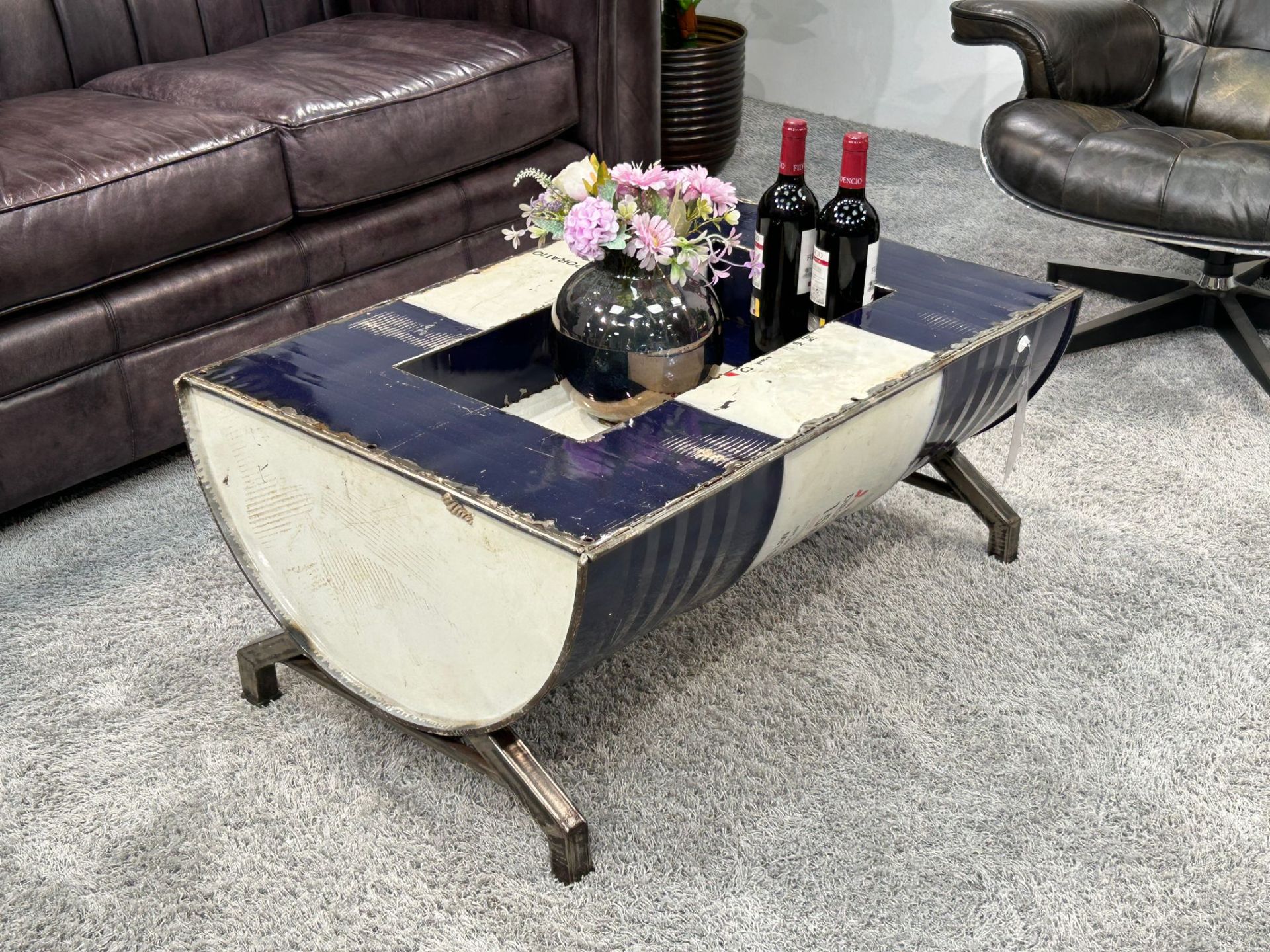 Couchtisch aus Alteisen "Rockwall" aus recycelten Ölfässern