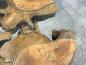 7 cm massive Tischplatte aus Teakholz, bestehend aus drei verleimten Baumscheiben |