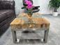 Wohnzimmertisch aus recyceltem Altholz "Wild Landscape" ca. 80 x 60 x 40 cm mit Glaseinlage