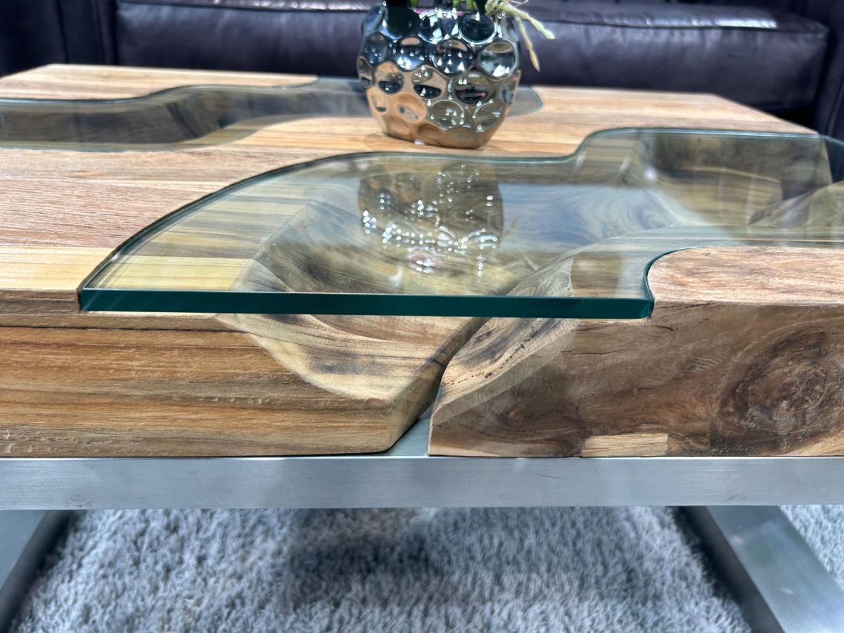 Material: Teakholz (recycelt) mit Glaseinlagen und Edelstahlgestell