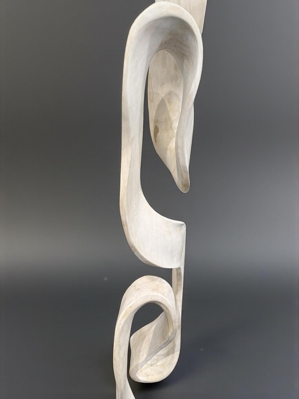 Ein einzigartiges Statement für moderne Wohn- und Geschäftsräume: Diese kunstvoll geschwungene Holzsäule wurde in aufwendiger Handarbeit aus einem einzigen Stück Baumstamm geschnitzt. Die dreidimensionale Formgebung verleiht der Skulptur eine elegante Dynamik, die sich harmonisch in minimalistische und geschmackvoll eingerichtete Räume einfügt.