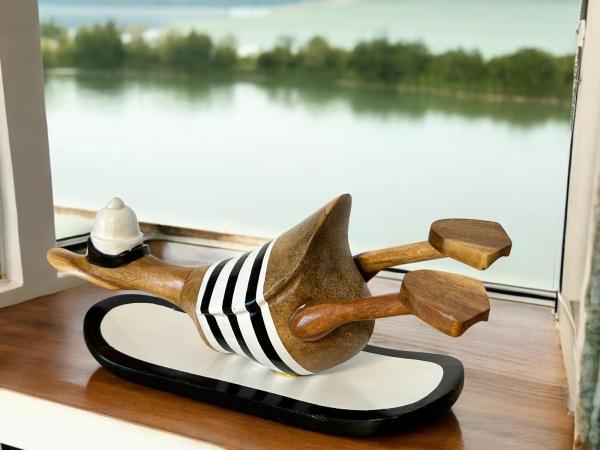 Diese humorvolle Deko-Ente eignet sich perfekt als Geschenk für Surfer, Wassersportler und Strandliebhaber. Ob als witzige Dekoration für das Badezimmer, das Wohnzimmer oder als Hingucker in einer Ferienwohnung – die „Surfer“-Holzente sorgt überall für gute Laune.