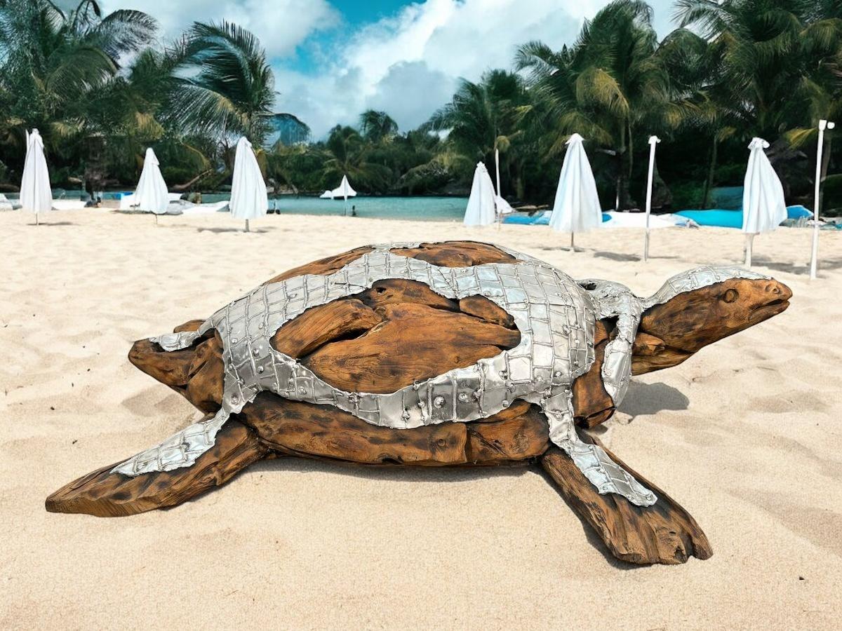 Skulptur Schildkröte aus recyceltem Altholz – Handgefertigtes XXL-Dekorobjekt mit Aluminiumakzenten