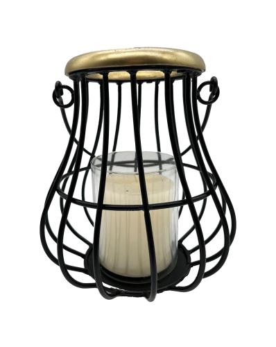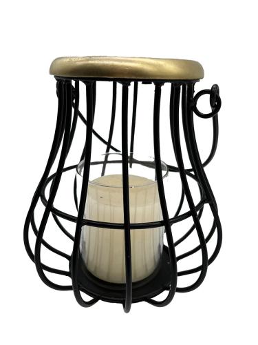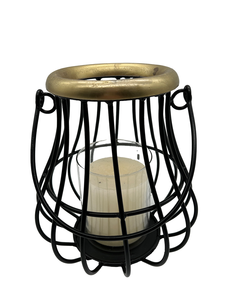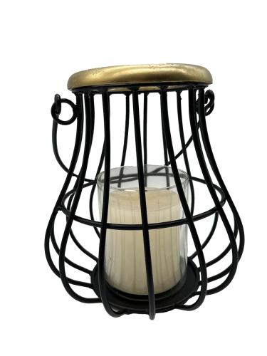Eigenschaften: Kerzenhalter/Windlicht aus schwarz lackiertem Stahl mit Griff