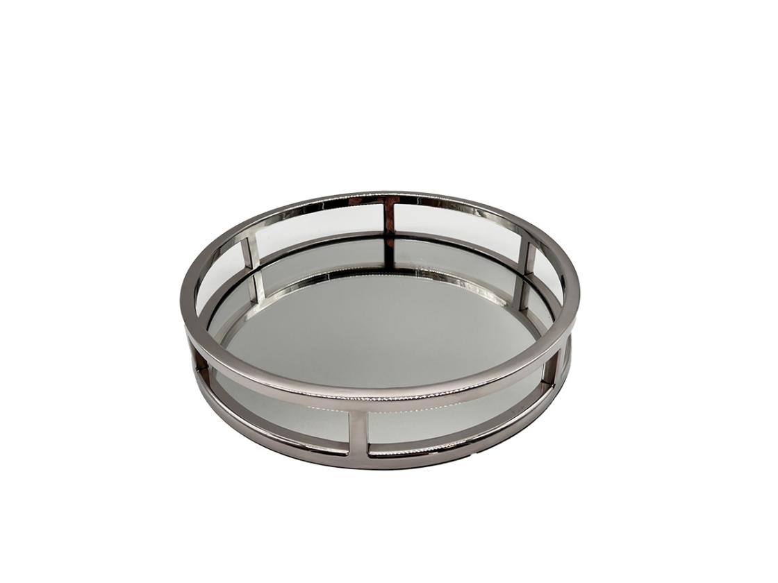 Serviertablett aus verchromtem Stahl mit Spiegelboden ca. Ø 28 x H5,5 cm Ähnlich der Abbildung!