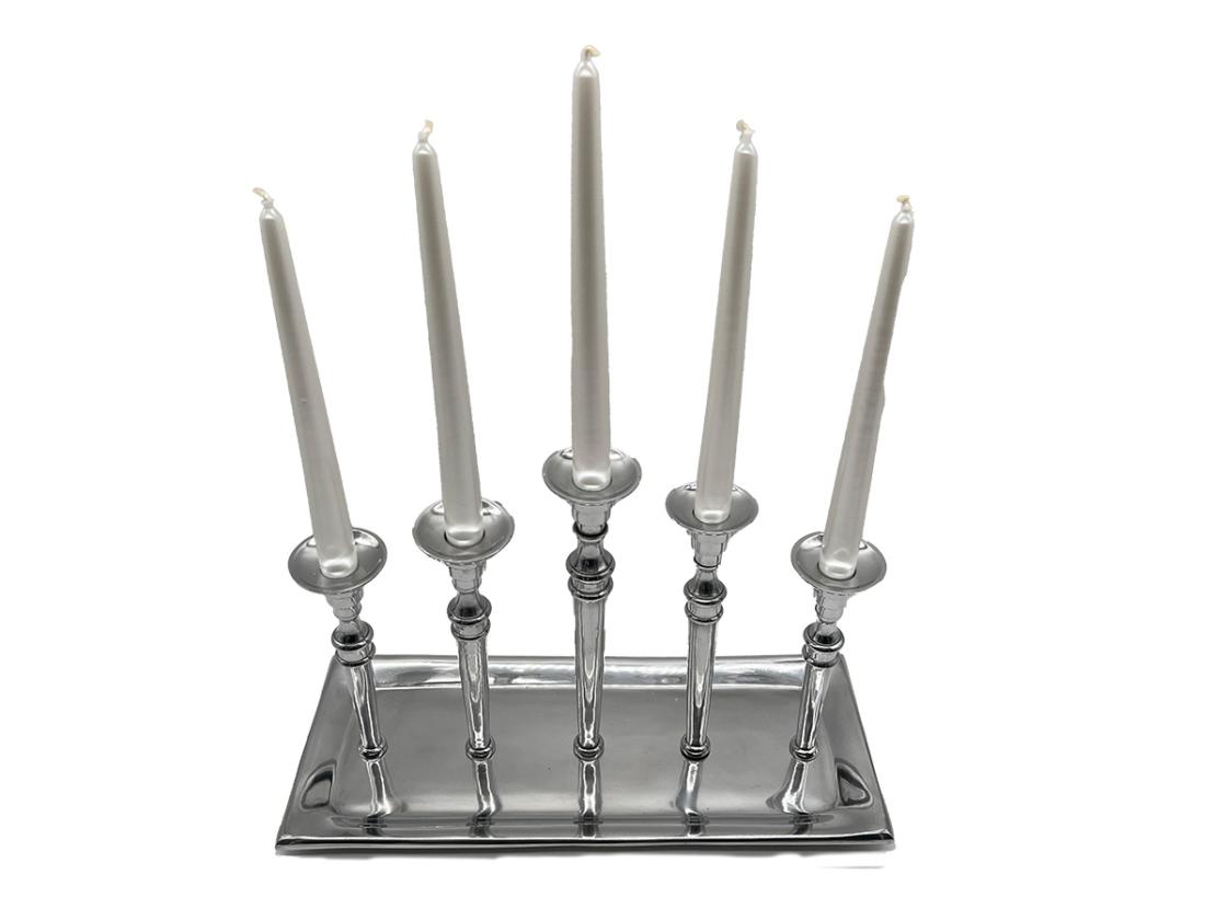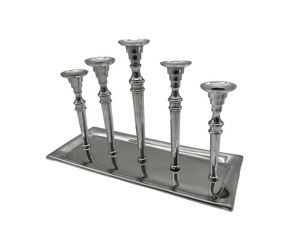 Abmessungen: ca. B40 x T16 x H27 cm Eigenschaften: Kerzenständer aus verchromtem Edelstahl Lieferzeit: Die Auslieferung erfolgt ab unserem Lager in der Regel innerhalb 4-5 Tage nach Eingang des Auftrages.