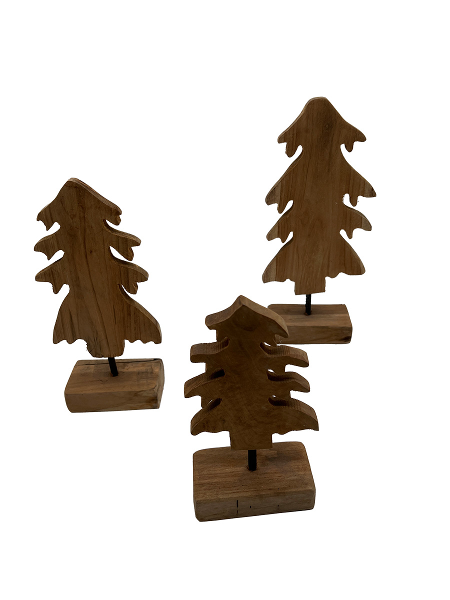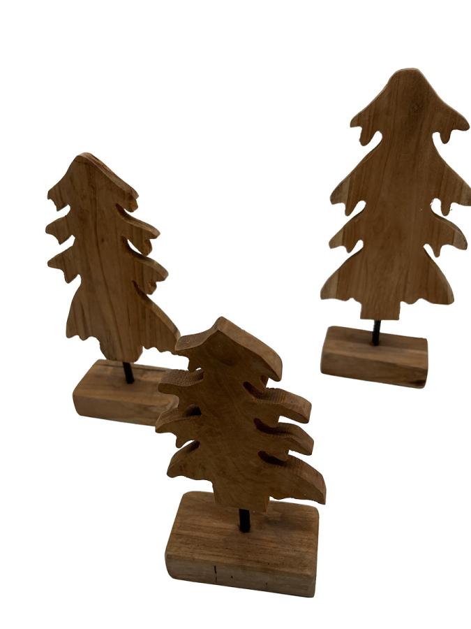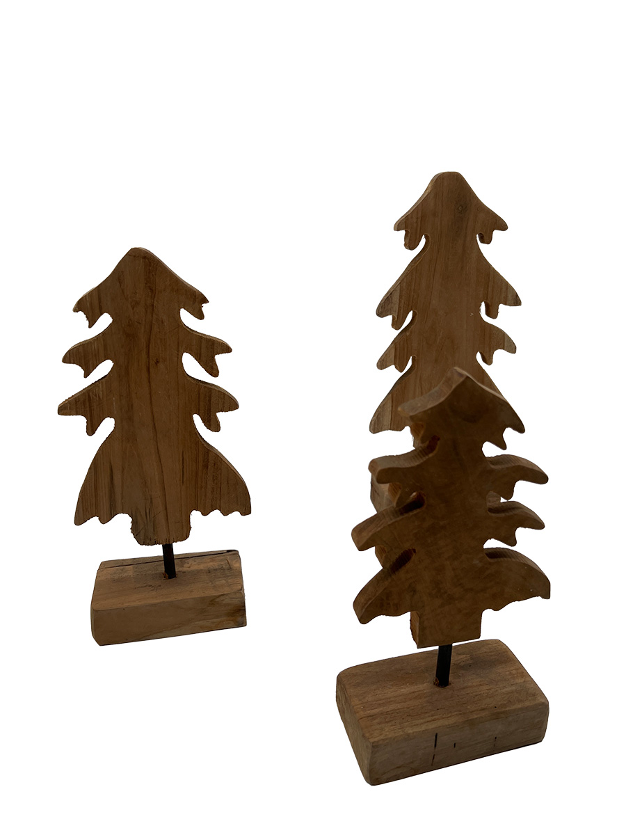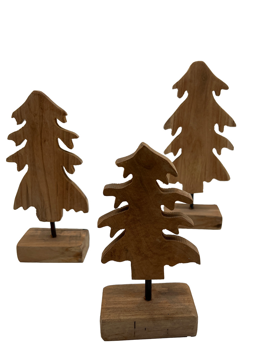 Handgeschnitzte Weihnachtsdekoration aus Holz "Tannen" ca. B11,5 x T5,5 x H22 cm, B12 x T5 x H27 cm, B13 x T5,5 x H31 cm ähnl. Abbildung