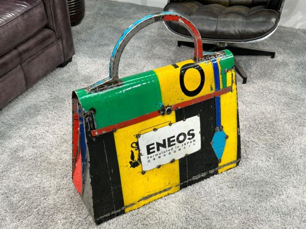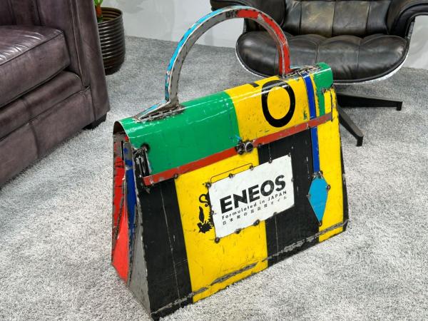 Besuchen Sie unsere Möbelausstellung in Detern! In unserem 6000 qm großen Möbelhaus finden Sie nicht nur diese einzigartige Handtasche aus Alteisen, sondern auch viele weitere interessante Dekorationsartikel aus alten Ölfässern. Lassen Sie sich von tausenden weiteren außergewöhnlichen Einrichtungsideen inspirieren und entdecken Sie, wie alte Materialien zu neuen Schätzen für Ihr Zuhause werden können.