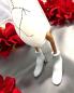 Die Ente trägt ein klassisches weißes Brautkleid mit einem passenden Schleier und kleinen hellgrauen Schuhen. Dank der detailreichen Gestaltung ist sie ein originelles Geschenk zur Hochzeit oder eine stilvolle Dekoration auf dem Brauttisch.