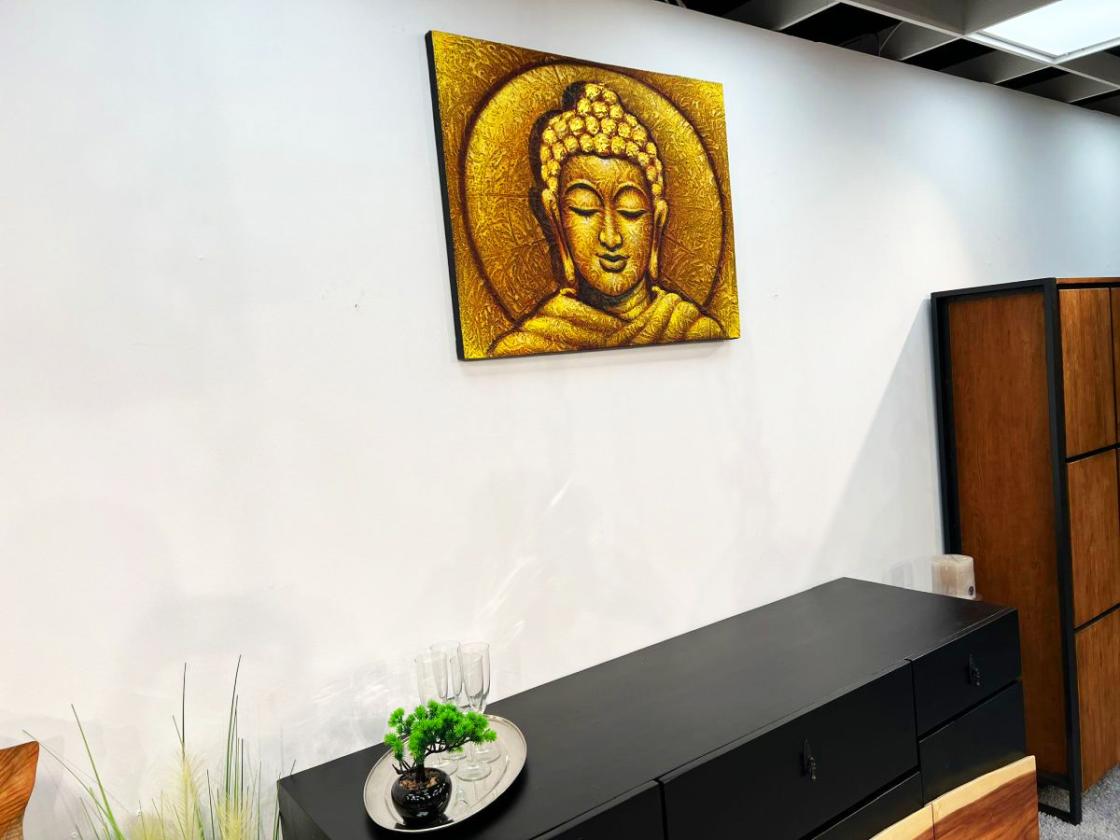 Das handgemalte Ölgemälde "Goldener Buddha" ist eines der Kunstwerke unserer Partner, die jede Aufmerksamkeit auf sich zieht. Dieses Bild wurde in stundenlanger Handarbeit mit höchster Präzision auf eine Leinwand gemalt. Dabei ist ein außergewöhnliches Kunstwerk entstanden, dass ein Highlight für jeden Kunstliebhaber darstellt.
