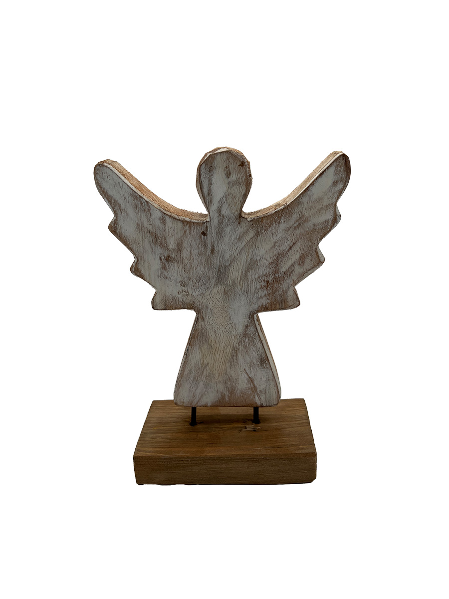 Handgeschnitzte Dekoration aus Holz "Engel weiß S" ca. B15 x T9 x H26 cm ähnl. Abbildung