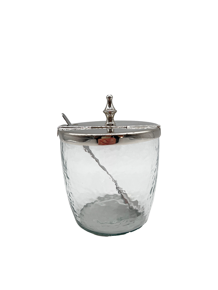 Zuckerbehälter aus Glas und verchromtem Stahl ca. Ø 10 x H10 cm Ähnlich der Abbildung!