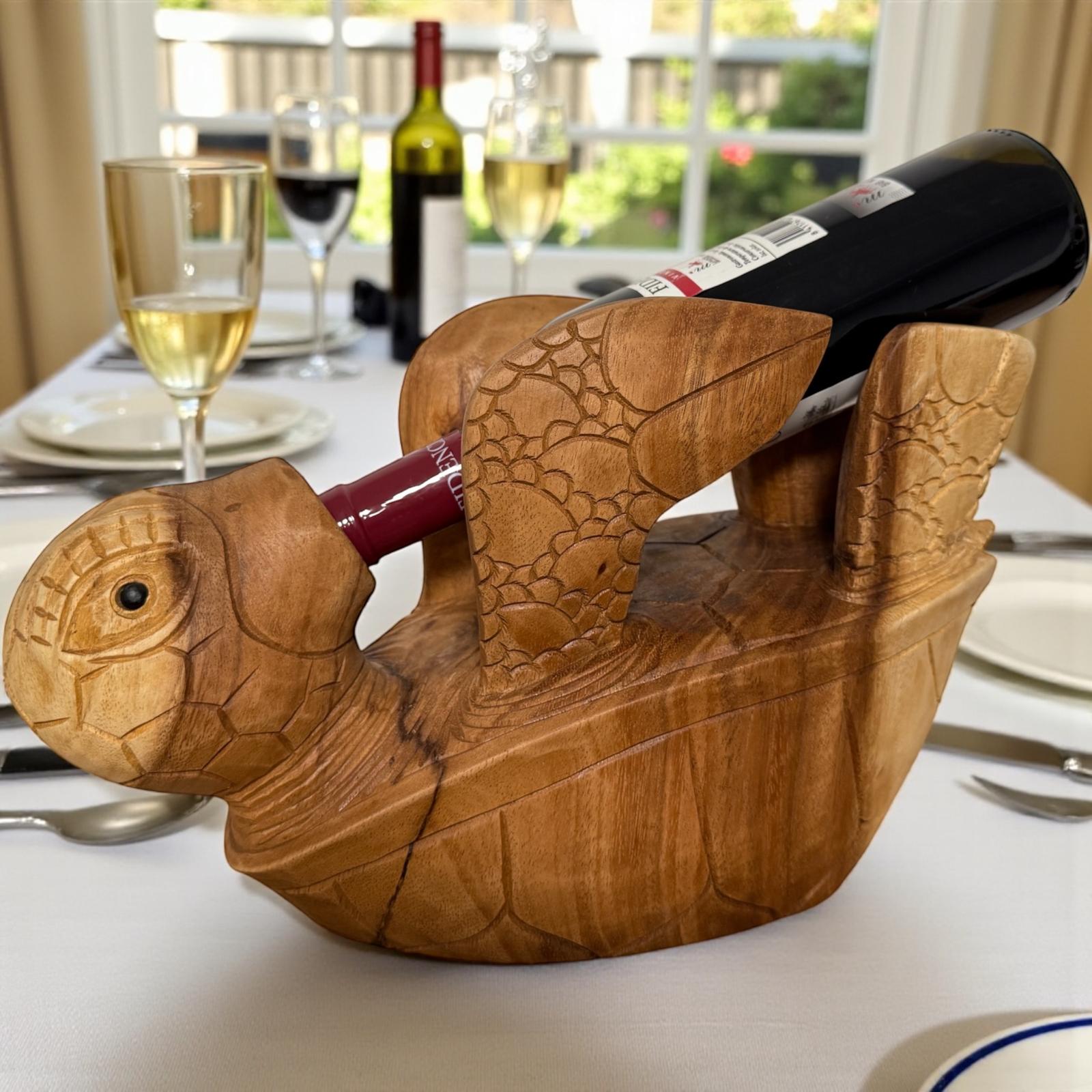 Geschnitzte Skulptur „Schildkröte“ – Flaschenhalter aus Massivholz
