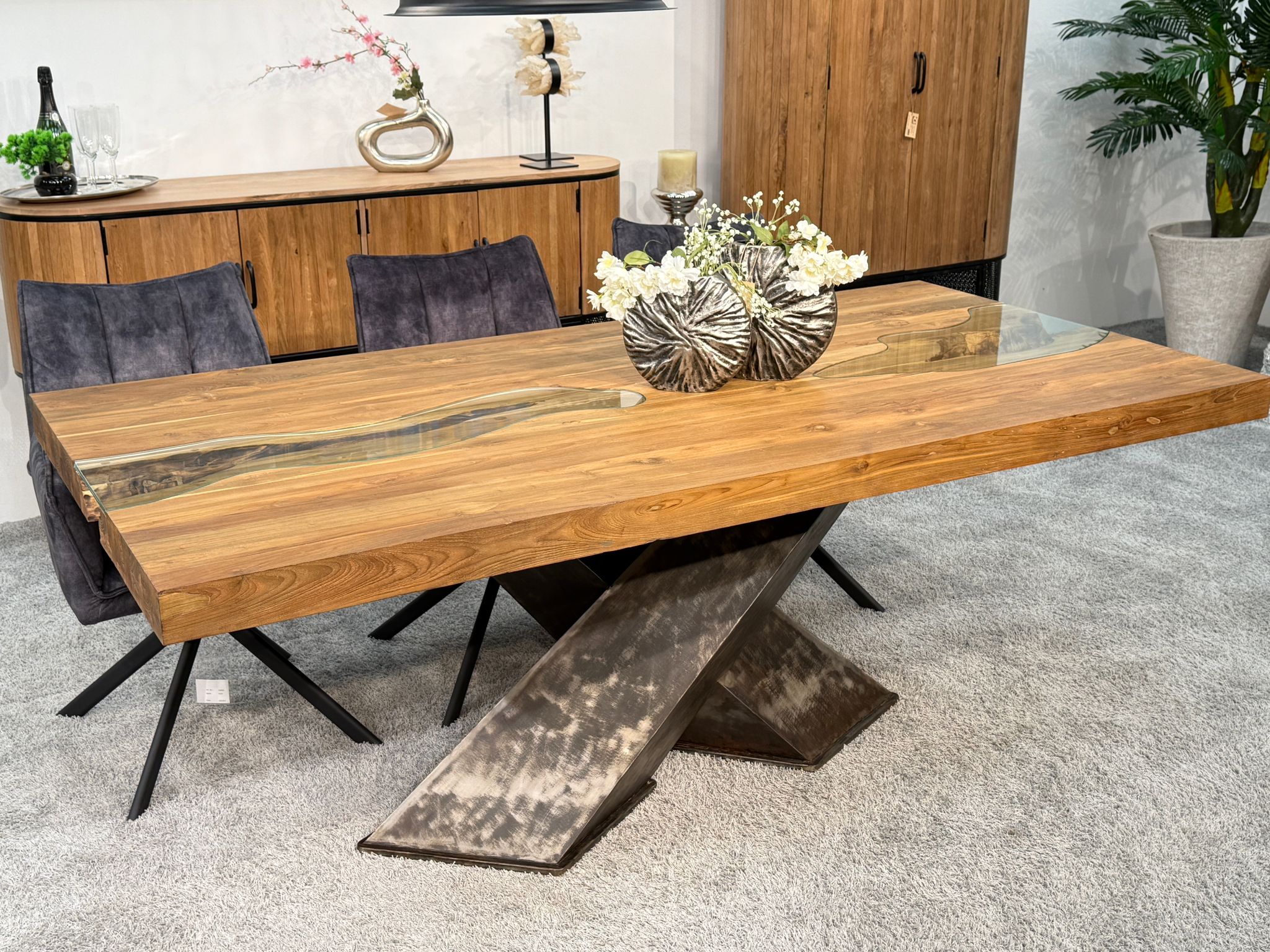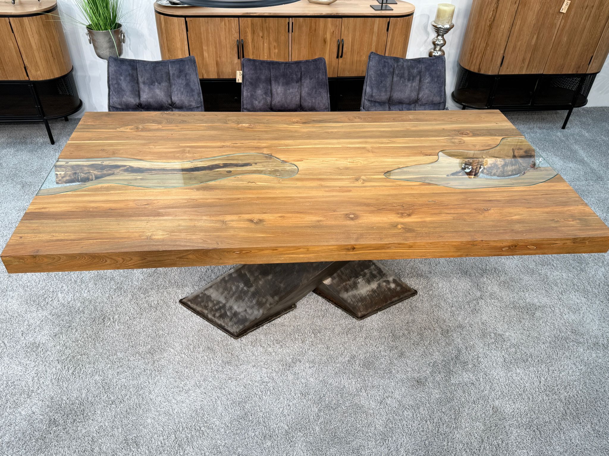 Esstisch ca. 200 x 100 x 78,5 cm "Deep Island Singlecross" aus recyceltem Altholz mit einem Tischgestell aus Rohstahl