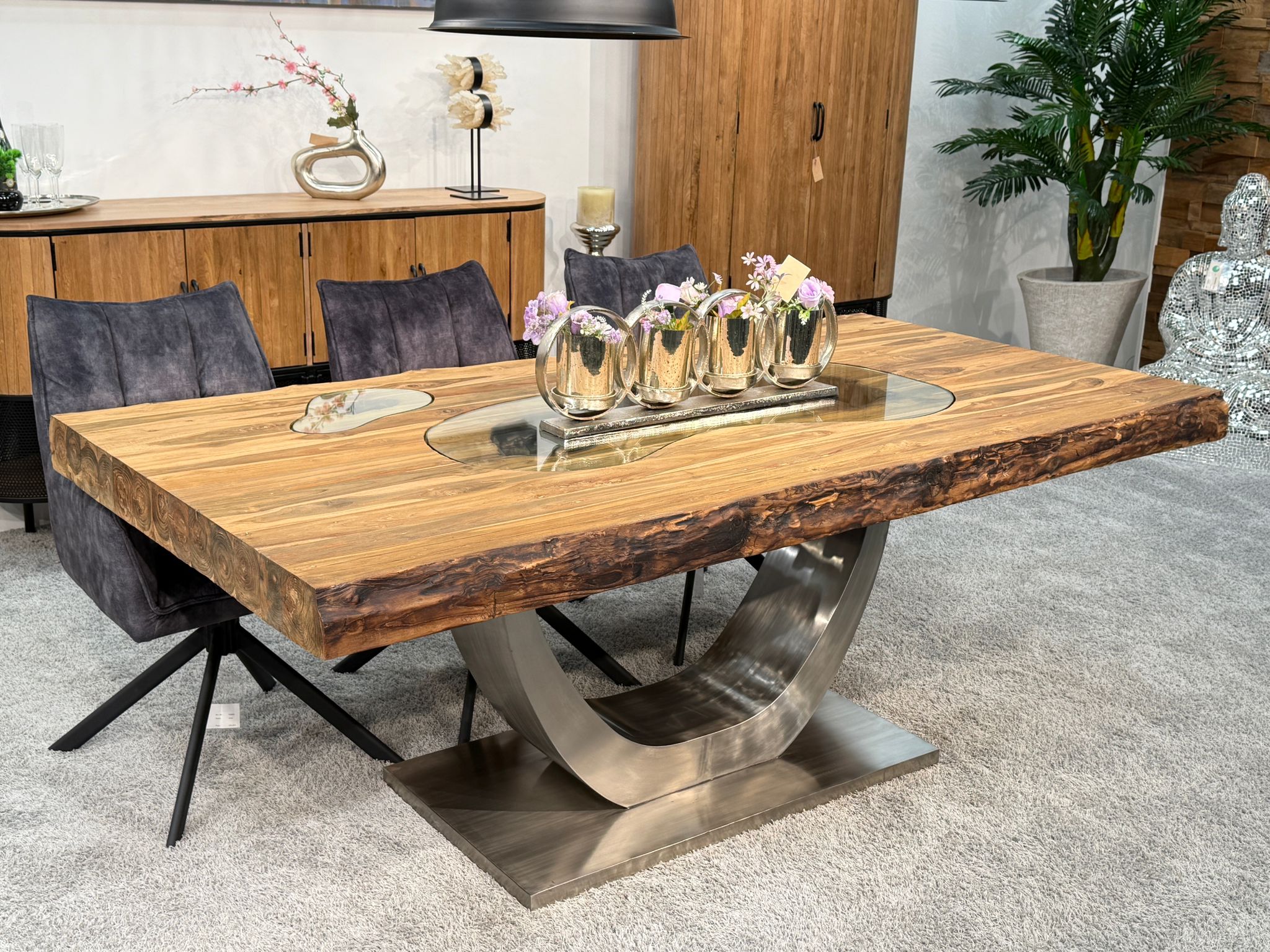 Esstisch ca. 200 x 100 x 77 cm "Deep Island" aus recyceltem Altholz mit einem Tischgestell aus Rohstahl