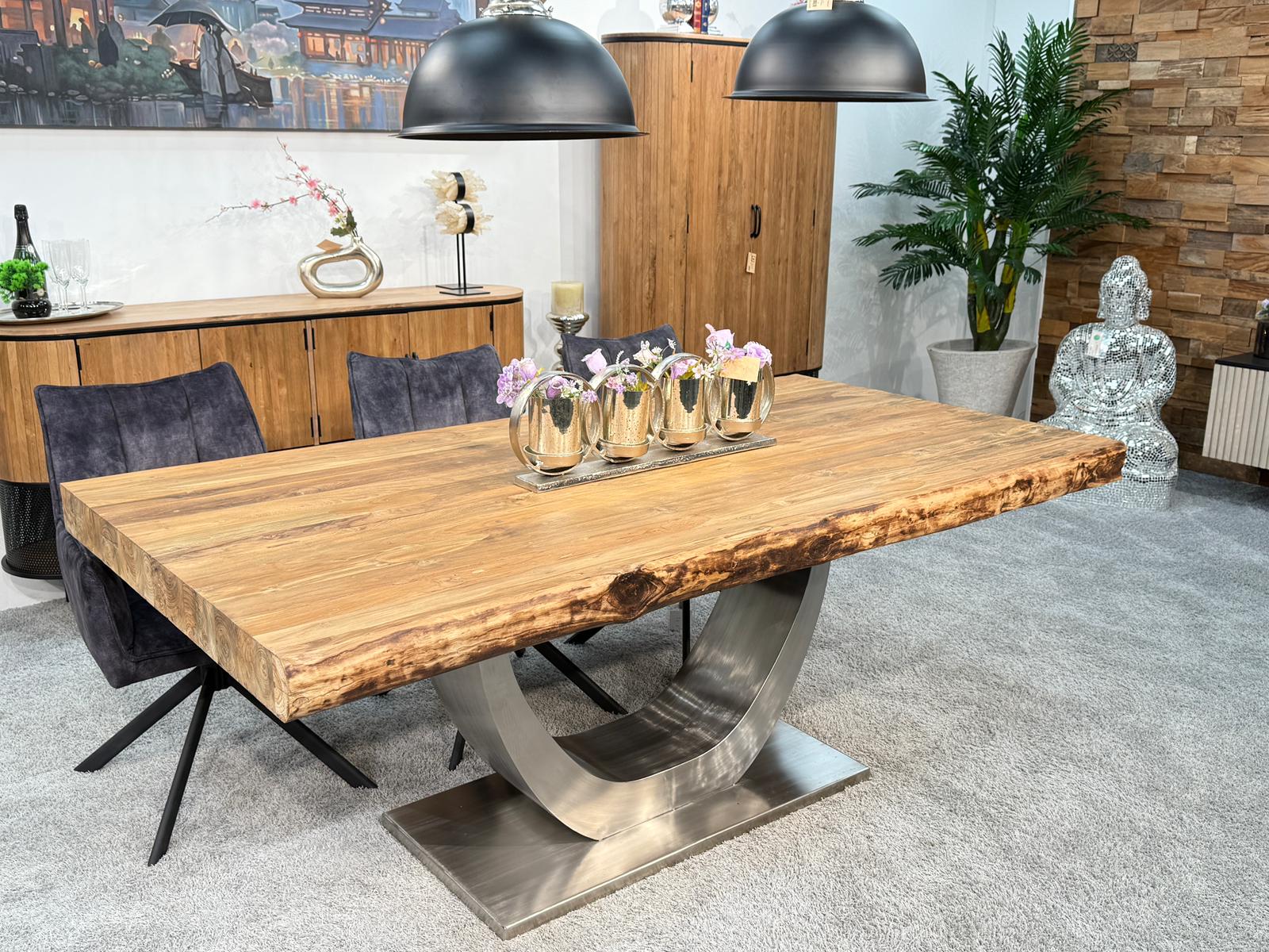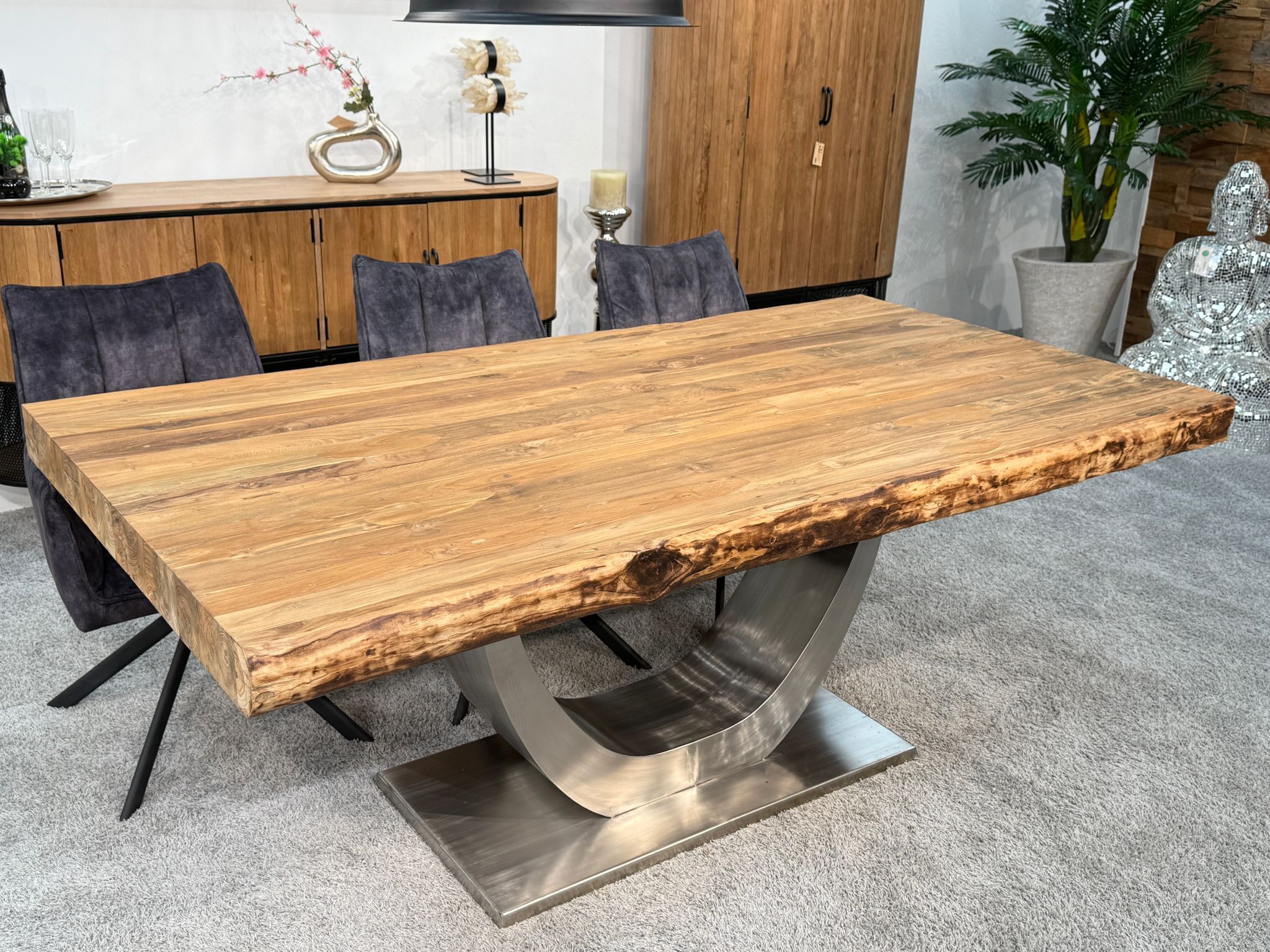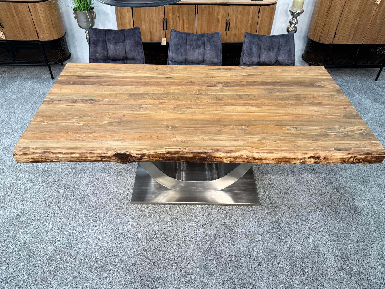 Esszimmertisch "Deep Island" 200 x 100 cm – Massives Altholz trifft gebürsteten Edelstahl