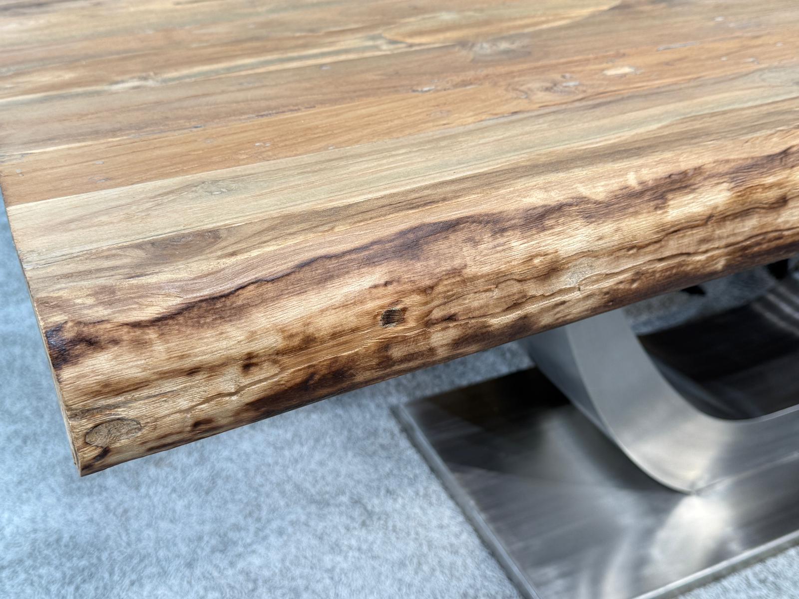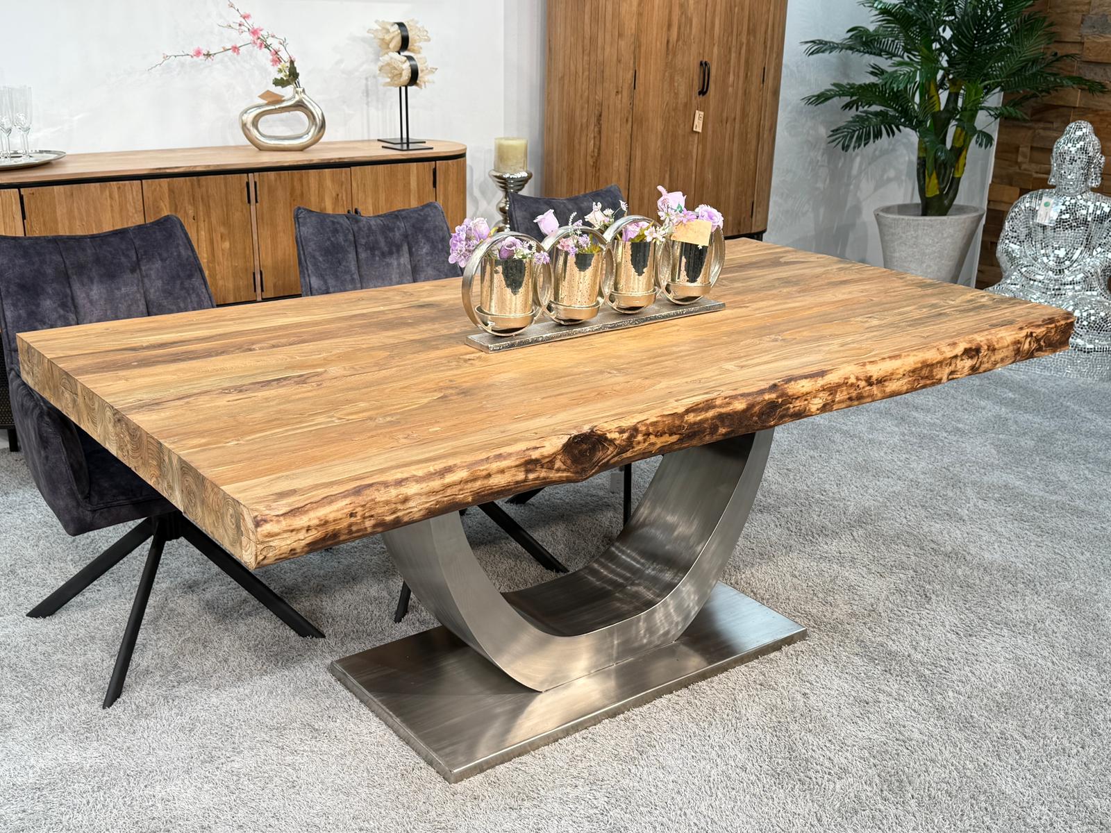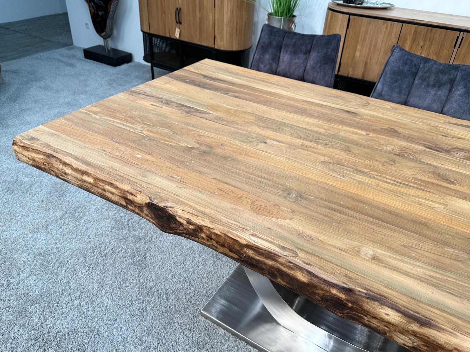Esszimmertisch "Deep Island" 200 x 100 cm – Massives Altholz trifft gebürsteten Edelstahl