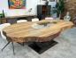 Edler Esstisch aus recyceltem Altholz "Fusion" ca. 255 x 112-145 x 78 cm und einem Rohstahlgestell