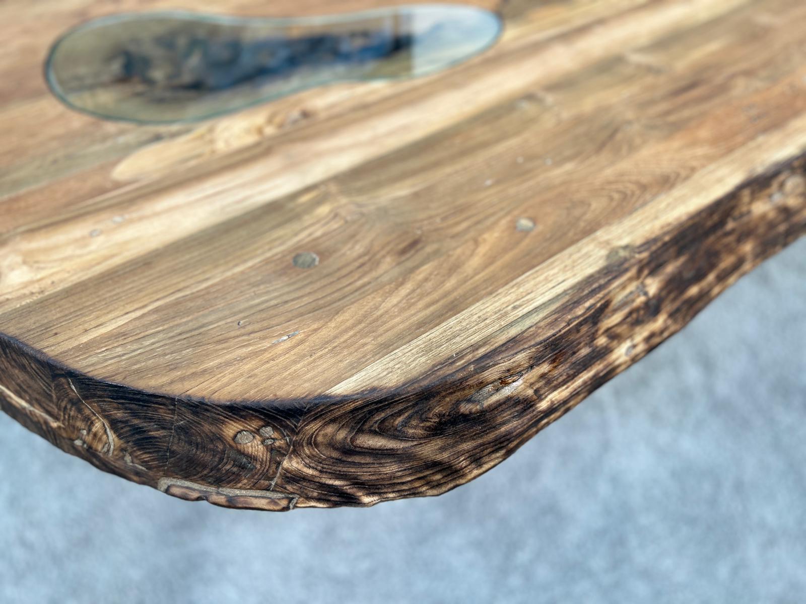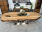 Jede Komponente dieses eindrucksvollen Esstisches wurde in reiner Handarbeit gefertigt. Die finale Form des Tisches entsteht erst mit dem letzten Schliff, was den Esstisch zu einem ganz besonderen Unikat werden lässt.