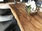 Traumhafter Esstisch aus aufwendig verleimten Baumscheiben mit einer Stärke von ca. 8 cm mit seitlicher Wildkante.