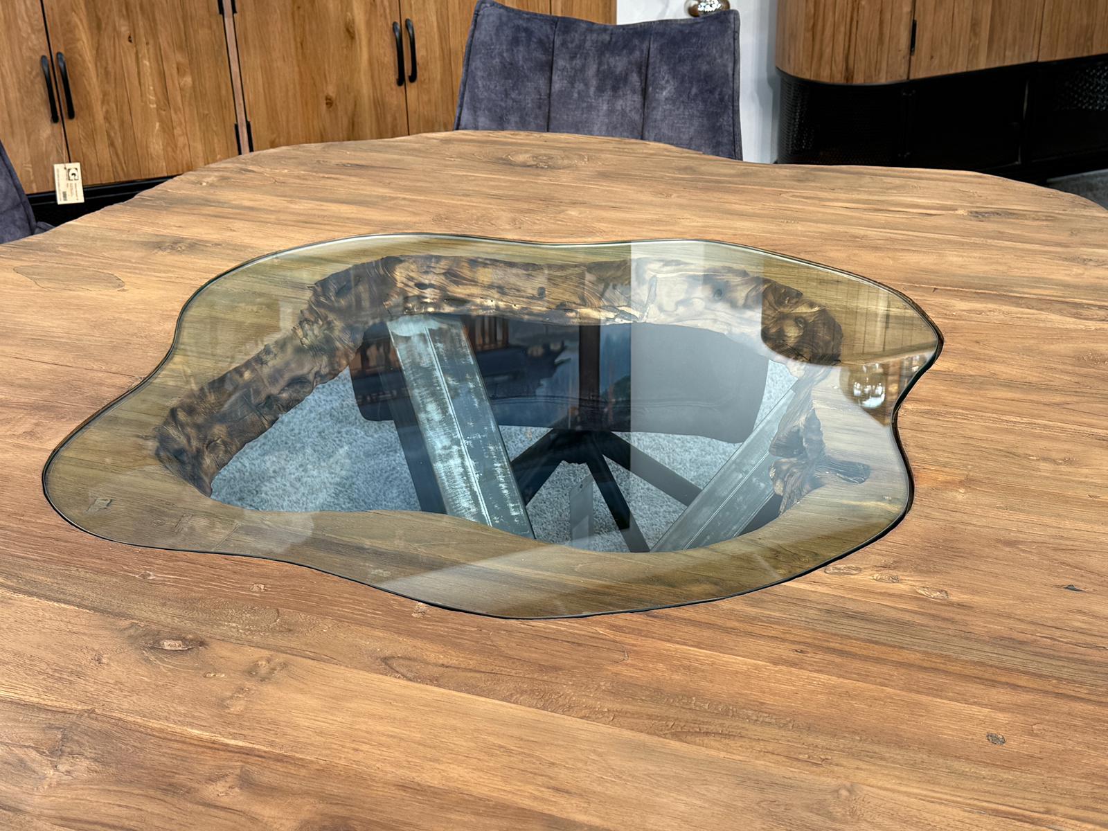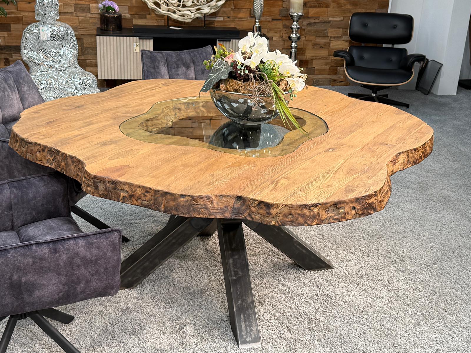 Das Holz für diesen Tisch stammt aus recycelten Materialien und erfüllt die höchsten Standards der umweltfreundlichen Möbelproduktion.