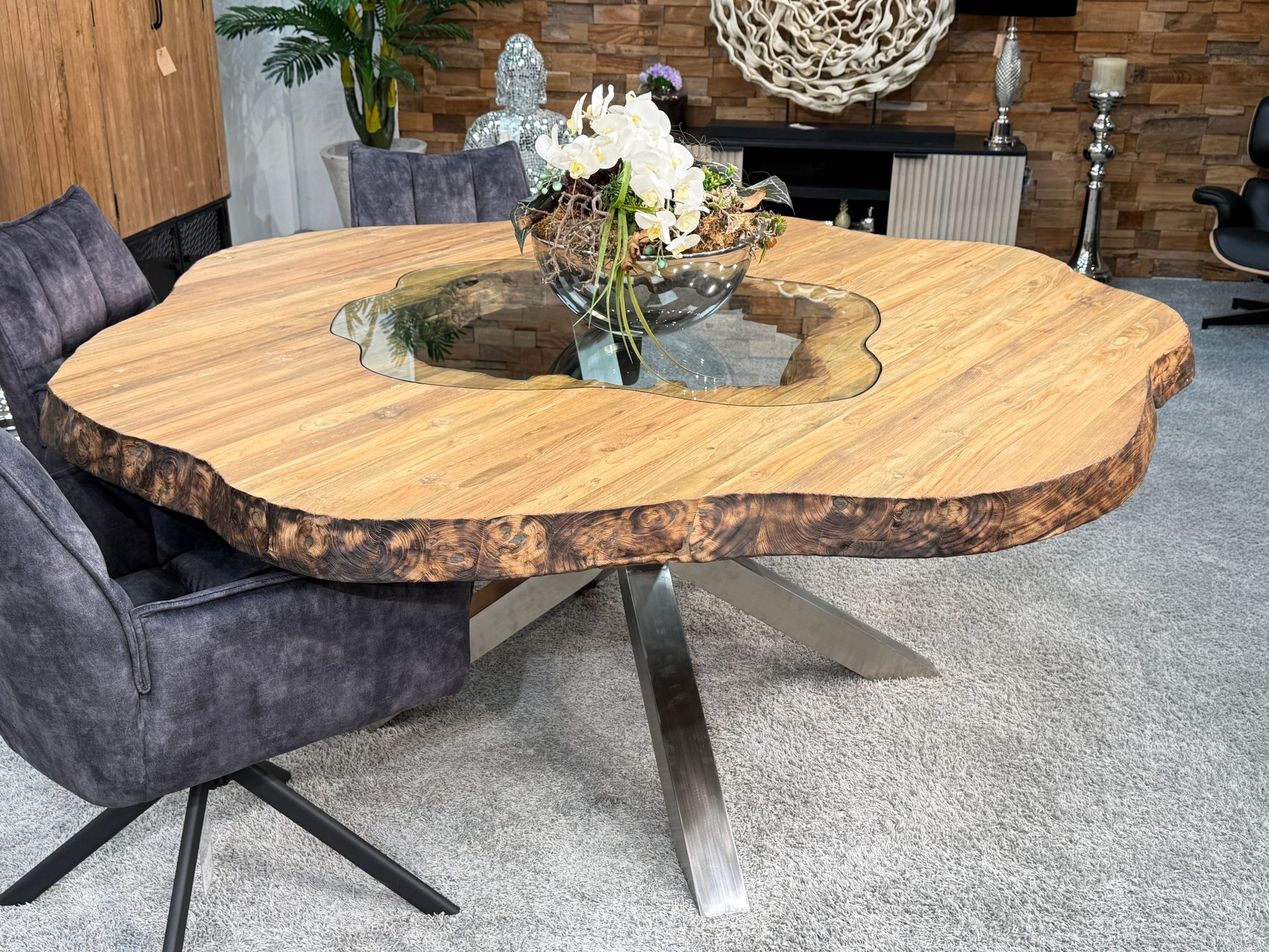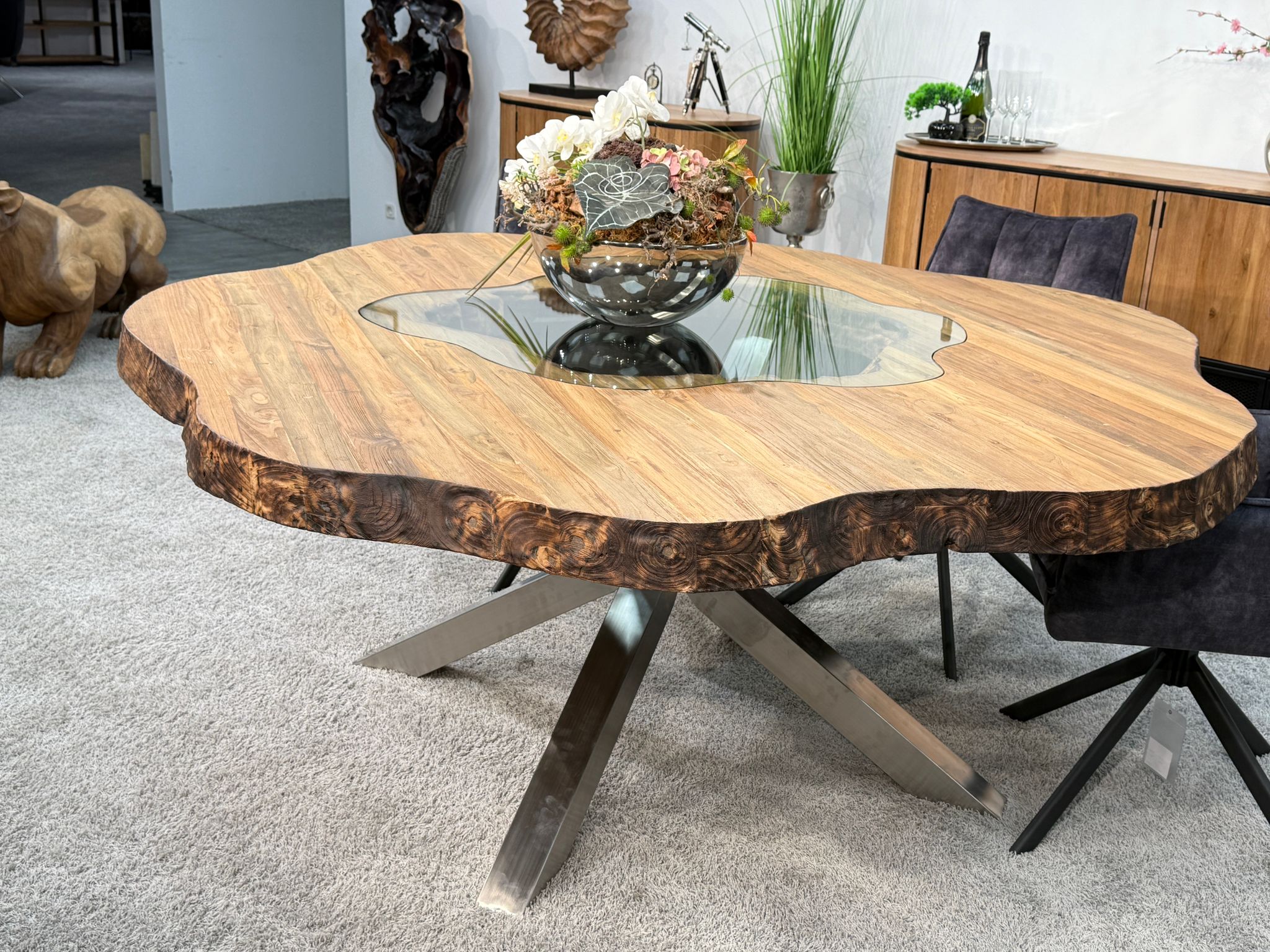 Esstisch " Natural Eternia" aus Teakholz mit Glaseinlage, ca. 194 x 180 x 79 cm