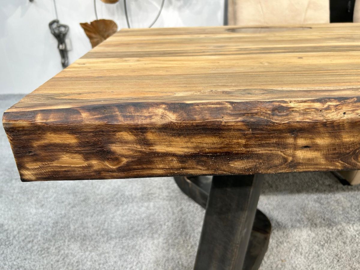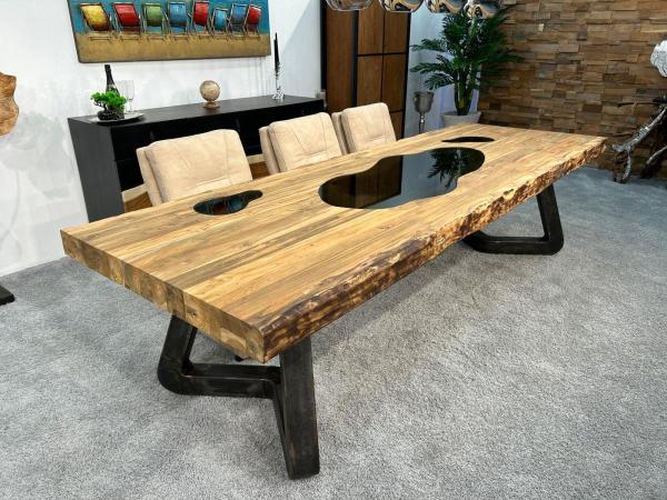 Esstisch / Massivholztisch ca. 300 x 110 x 79 cm "Deep Island" aus recyceltem Altholz mit einem Tischgestell aus Rohstahl "Freestyle"