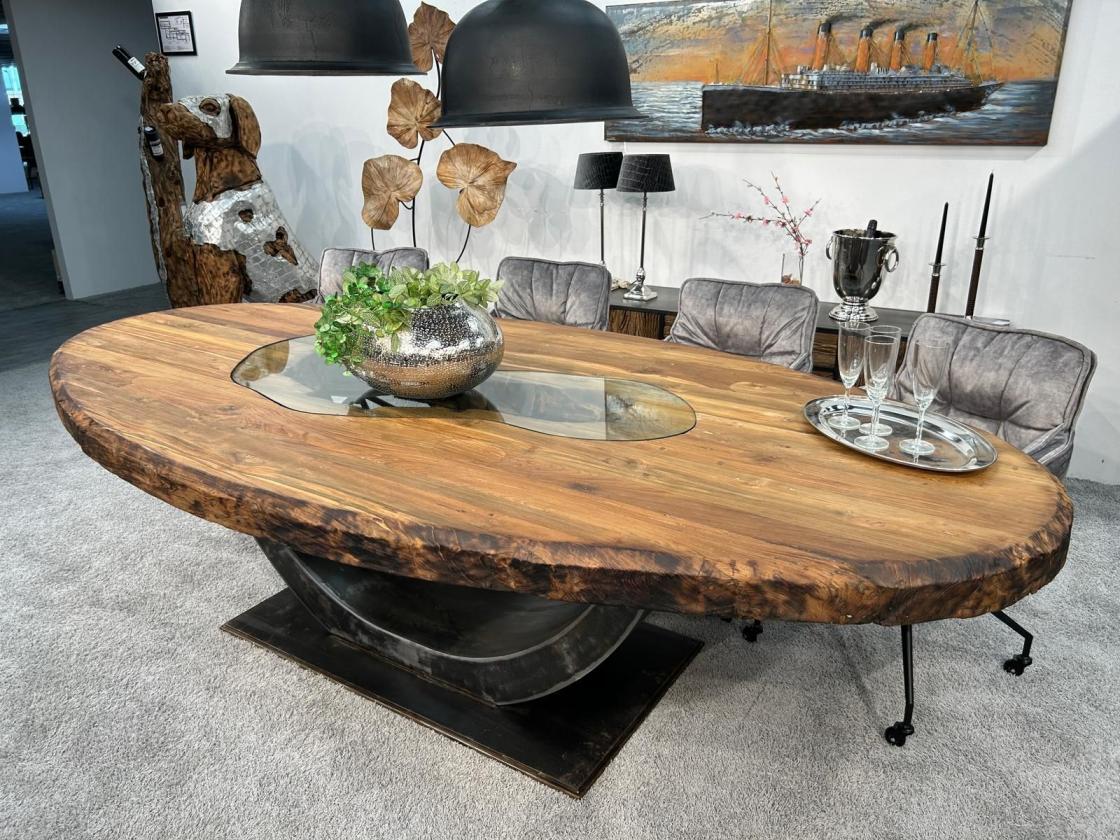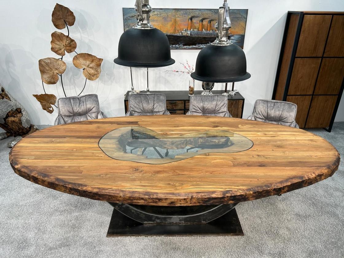 Beispiel: Ovaler Esstisch "Sky Island" im Format 280 x 140 cm aus recyceltem Holz, massiv 10 cm
