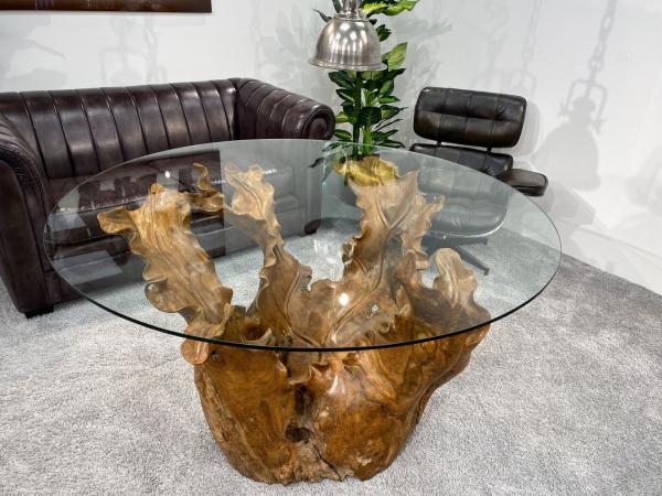 Couchtisch / Wohnzimmertisch aus einem massiven Teak Baumstumpf Durchmesser 144 cm