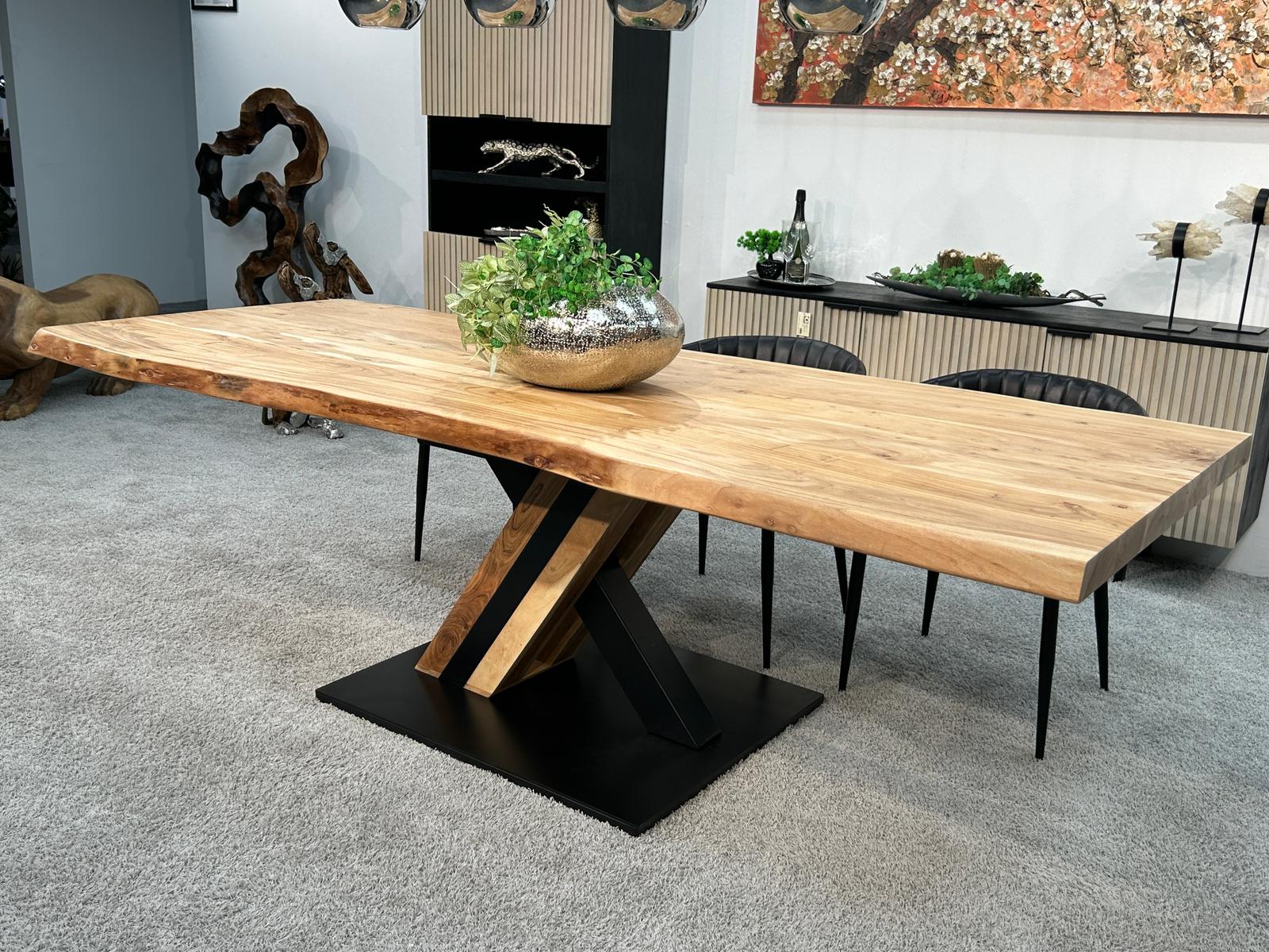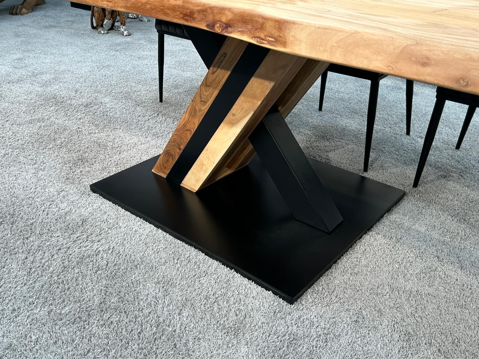Technische Details: Esszimmertisch mit Baumkante "Canyon" mit X-Gestell