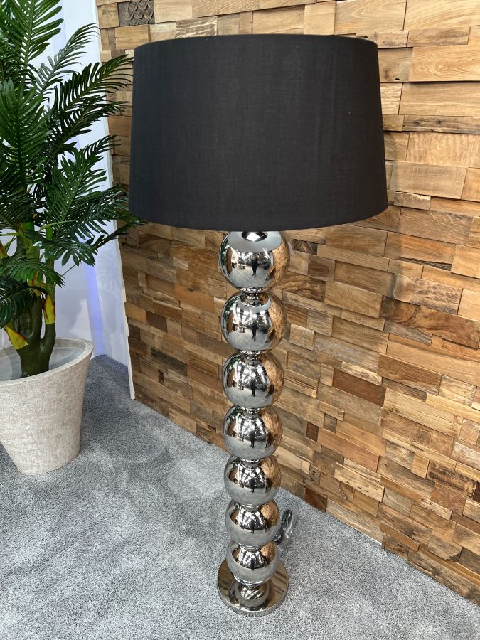 Design Stehlampe Höhe ca. 165cm, Durchmesser Lampenschirm ca.60cm, Durchmesser Fuß ca. 25cm aus verchromten Stahl und Standfuß aus Acryl