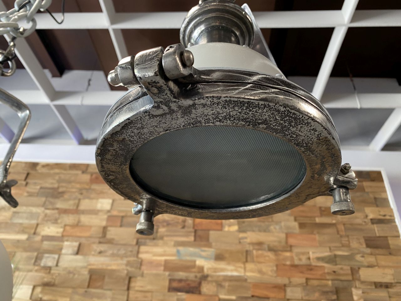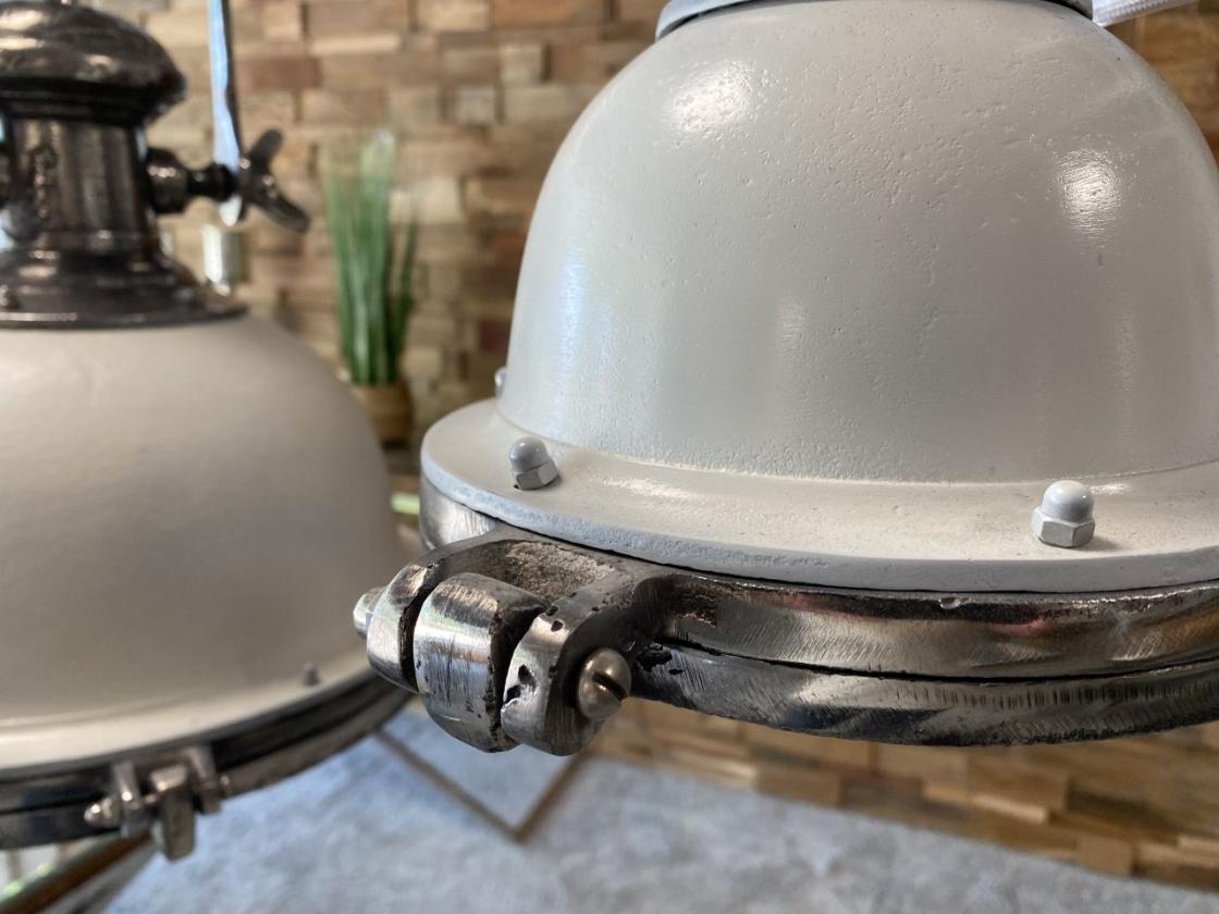 Material: Lampenschirm aus matt weiß lackiertem Stahl (Vintage), Hänger aus Nickelstahl
