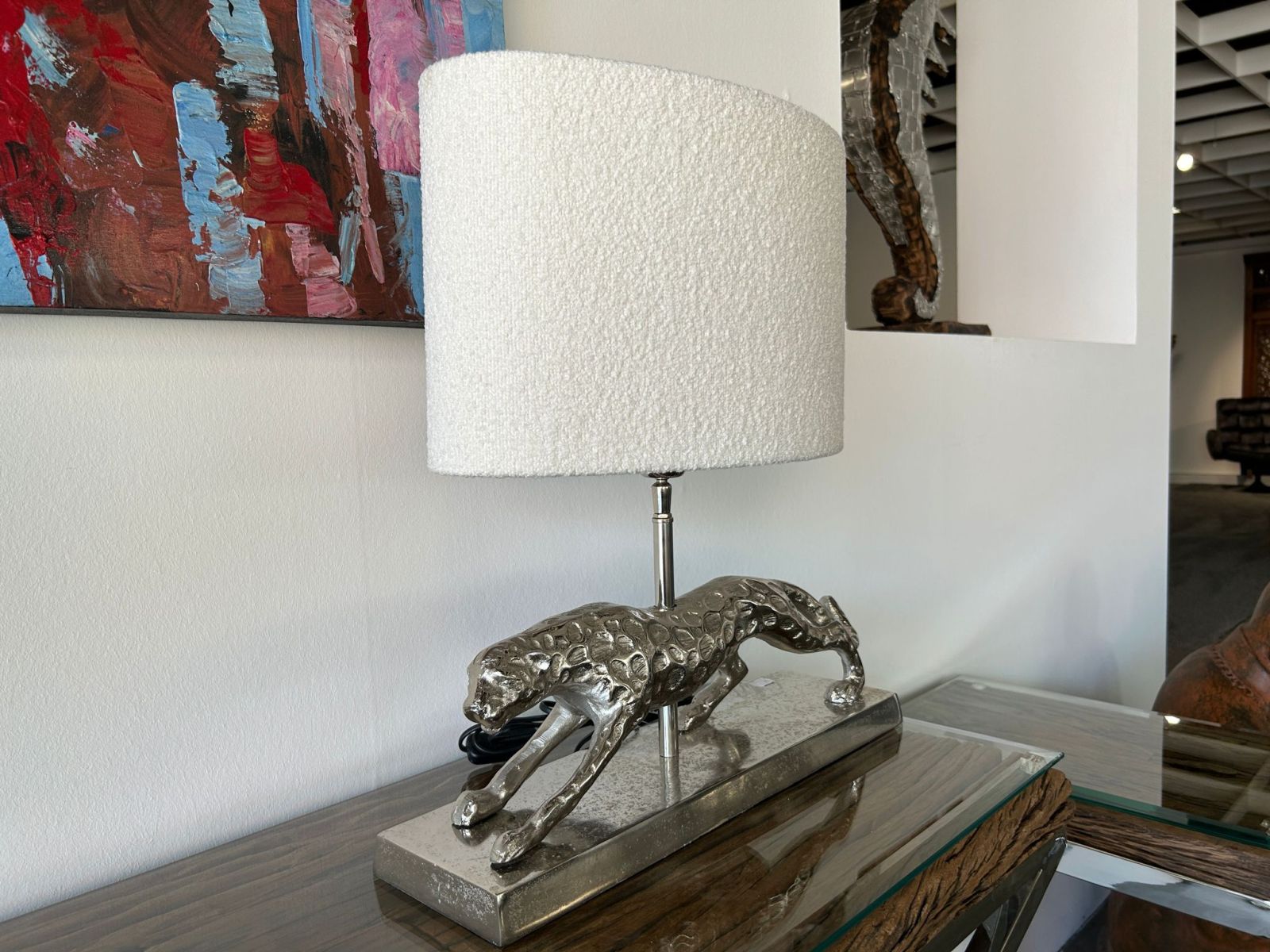 Tischlampe "Leopard" Höhe ca. 51 cm, Breite ca. 47 cm, Tiefe ca. 13 cm aus Nickelguss