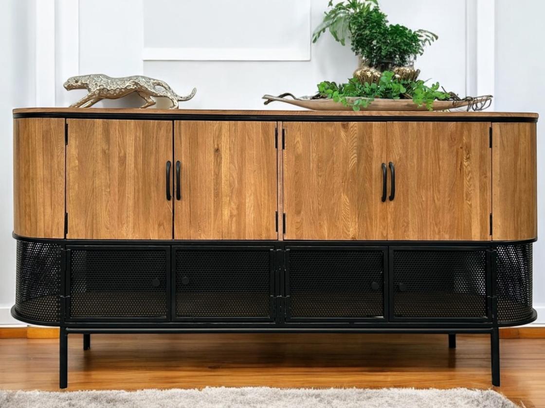 Das Sideboard „Manhattan“ bringt zeitlose Eleganz und hochwertige Handwerkskunst in Ihre Wohnräume. Diese exklusive Anrichte besticht durch ihr modernes Design mit sanft abgerundeten Seiten und ist aus massivem Eichenholz gefertigt, kombiniert mit einem stabilen, schwarz-matten Stahlgestell. Der warme Farbton der Eiche und das elegante schwarze Gestell schaffen einen stilvollen Kontrast, der sich harmonisch in viele Einrichtungsstile einfügt.