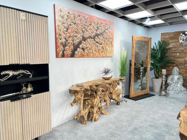 Erleben Sie das Sideboard aus Baumwurzel und viele weitere außergewöhnliche Möbelstücke in unserer 6.000 m² großen Möbelausstellung in Detern. Lassen Sie sich inspirieren und finden Sie das perfekte Möbelstück für Ihr Zuhause.