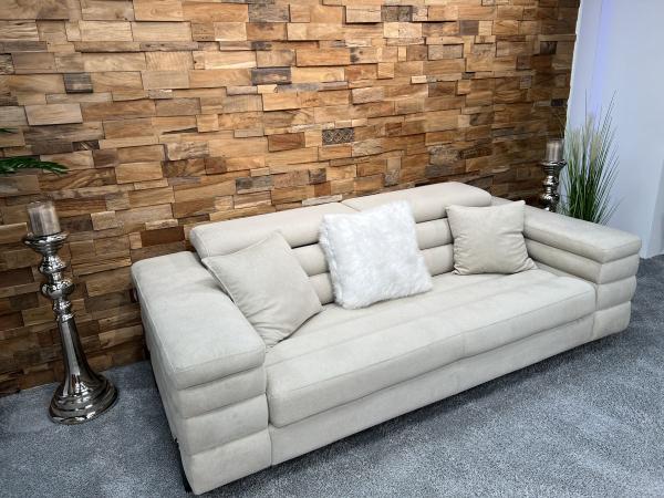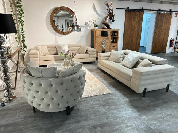 Passend zu dieser tollen Couch bieten wir ein passendes Gegenstück im Format 245 × 90 × 70-100 cm, das drei Personen Platz bietet an und einen Sessel im Format 110 x 95 x 75 cm. Die Kombination aus den drei Möbelstücken ergeben eine wunderschöne Wohnlandschaft.