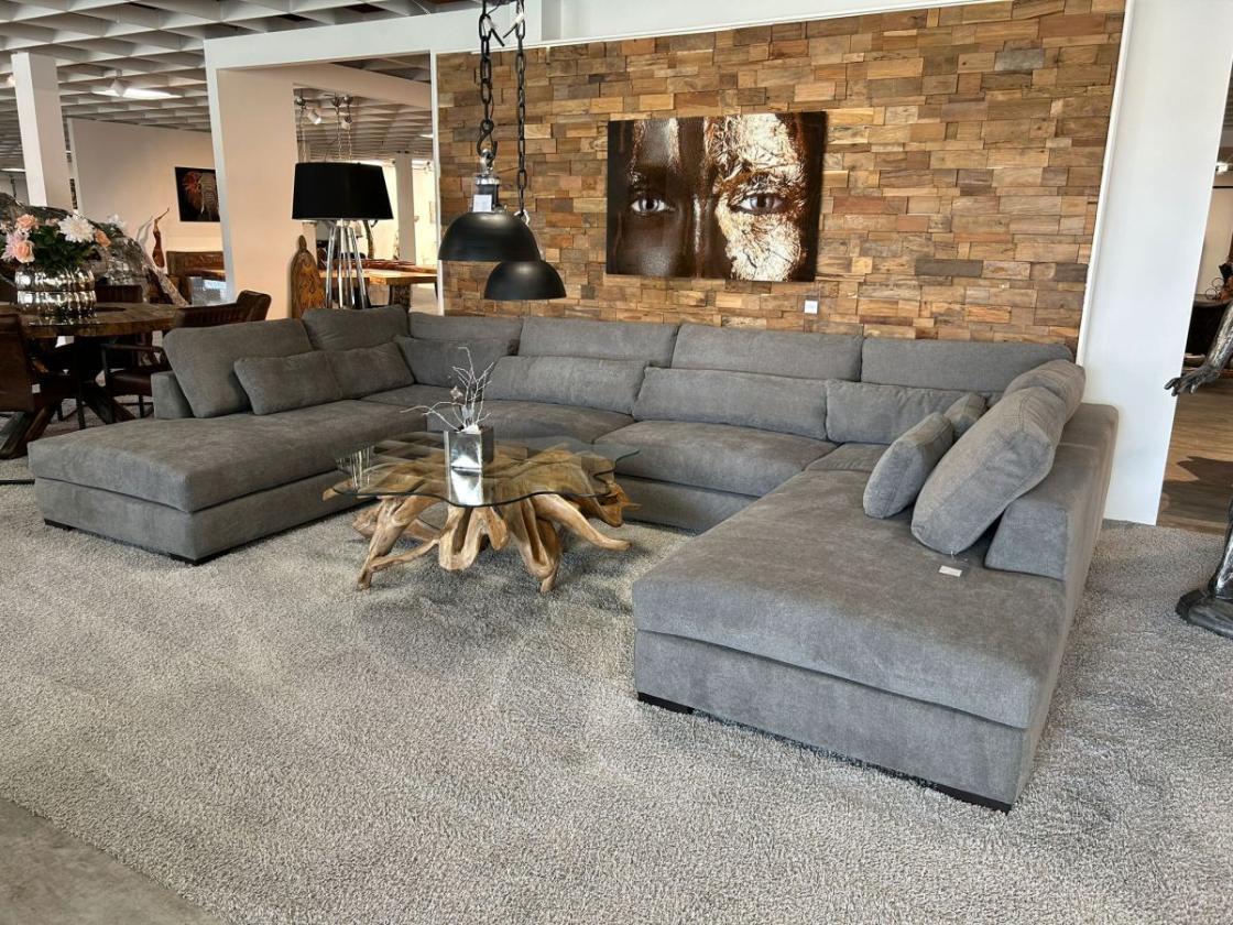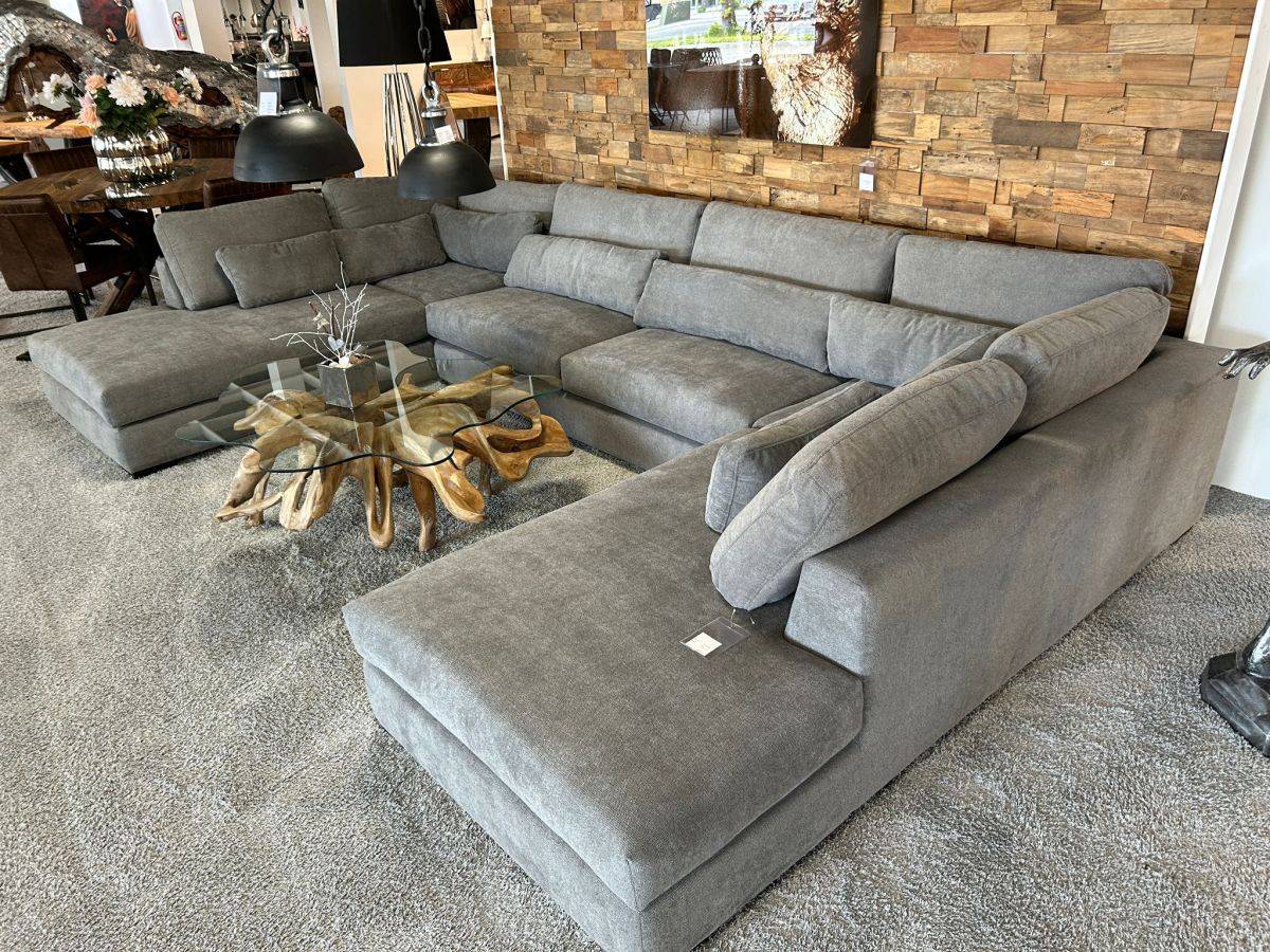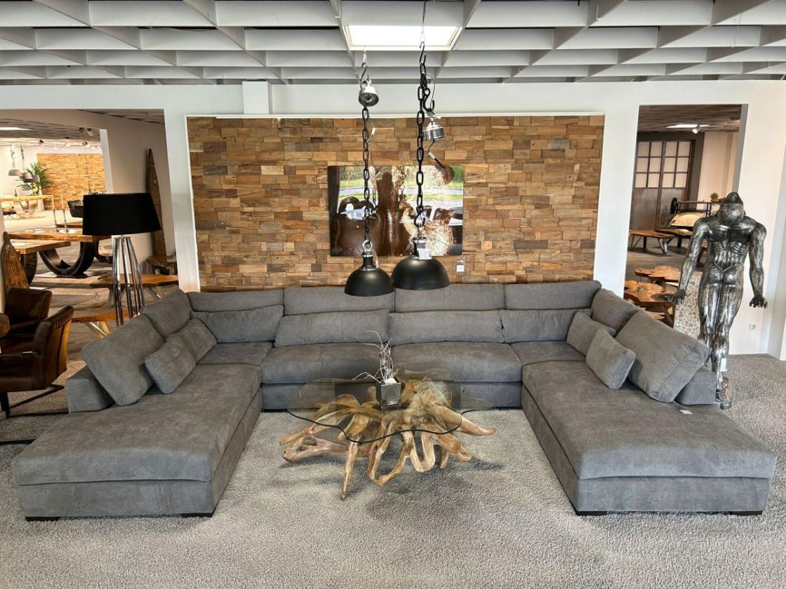 XXL Wohnlandschaft "Mauritius" in U-Form Feinwebstoff grau Rückenlänge: 405cm, Seitenlänge / Ottomane : jeweils 240cm