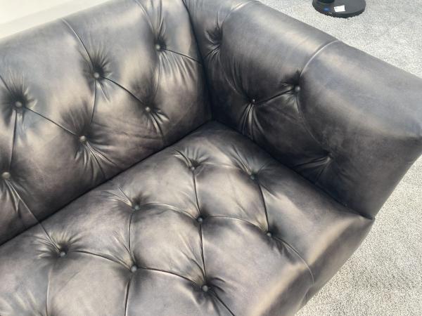 Materialien: Echtes Rindsleder, anthrazit Vintage gefärbt, seitliche Applikationen aus Aluminium im Aviator-Design
