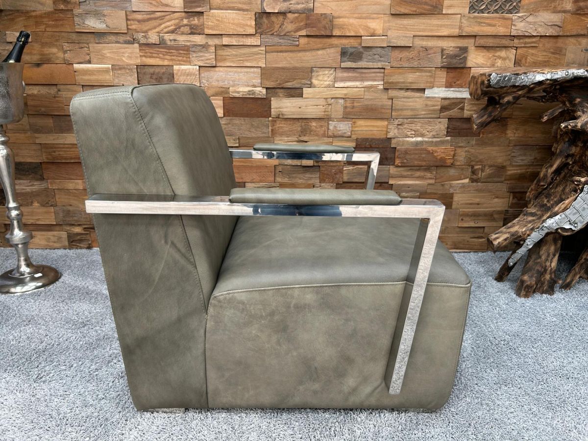Loungesessel "Arial" aus echtem Leder mit verchromtem Stahl im kubischen Design