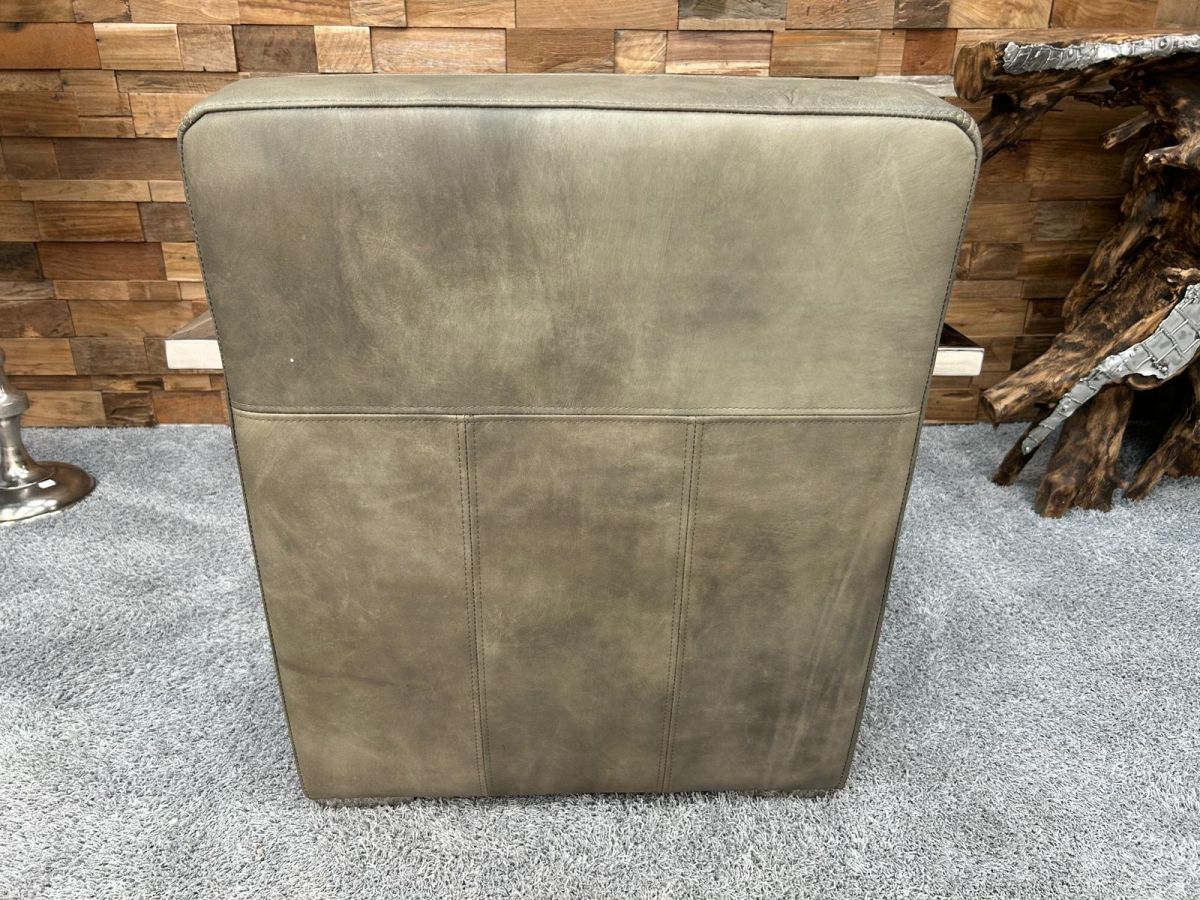 Materialien: Echtes Rindsleder, grau Vintage gefärbt, seitliche Armlehnen und Füße aus verchromtem Stahl.