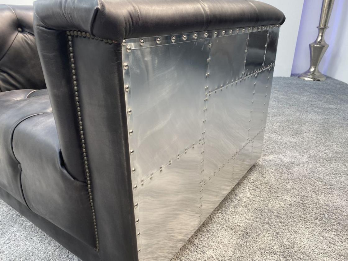An diesem Sessel stimmt einfach alles. Die hochwertige Verarbeitung der Lederpolsterung aus echtem Rindsleder, die interessante Gestaltung der Seitenteile aus genietetem Aluminium und die unendlichen Kombinationsmöglichkeiten durch die neutrale Farbgebung.