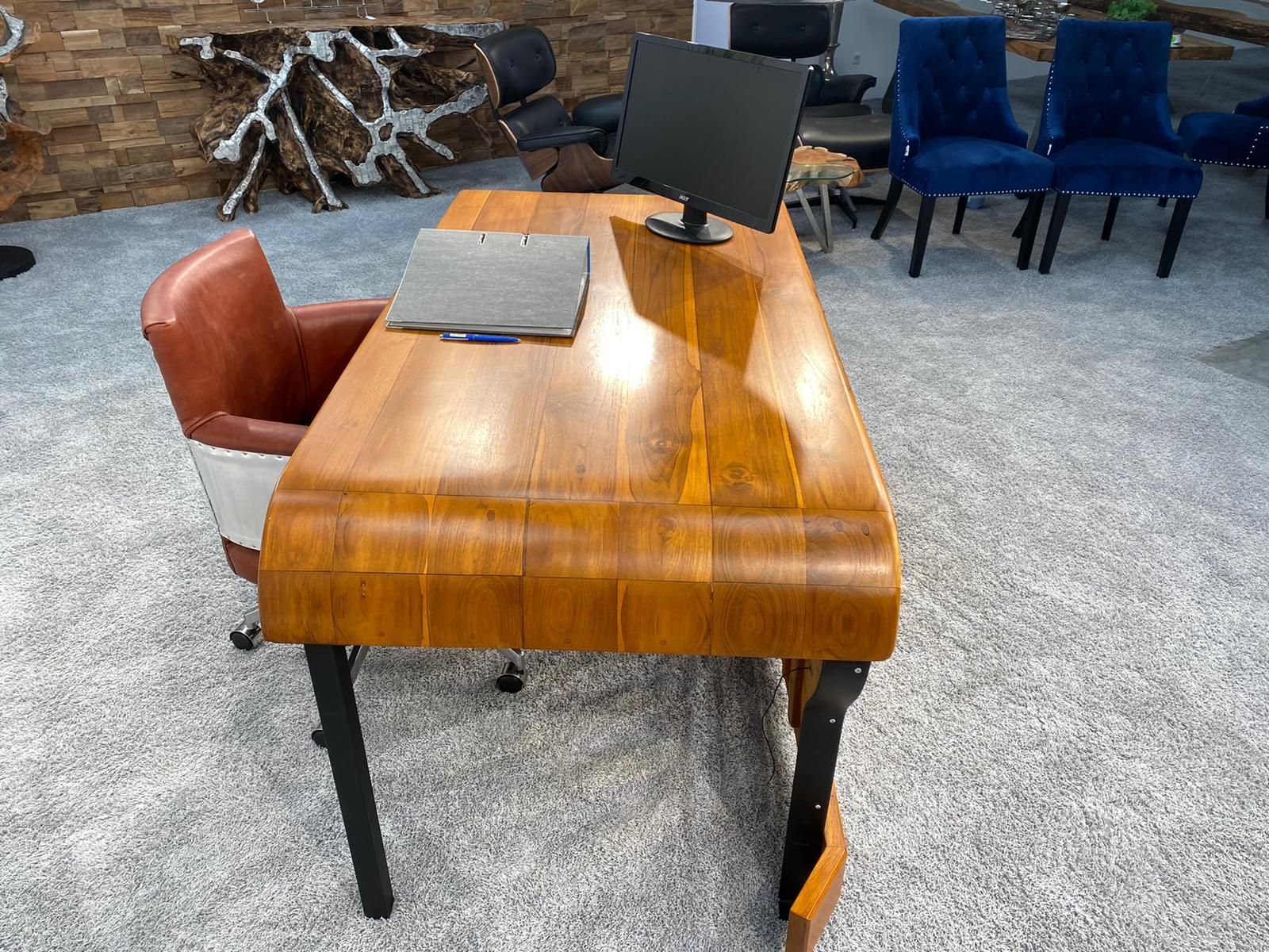 Dieser wunderschöne Schreibtisch wurde dem bekannten Militärjeep "Willys" nachempfunden. Der in kompletter Handarbeit gefertigte Schreibtisch besteht aus recyceltem Teakholz und verfügt über ein leichtes Untergestell aus schwarz lackiertem Rohstahl,... ein Muss für jeden Liebhaber dieser außergewöhnlichen Fahrzeuge.