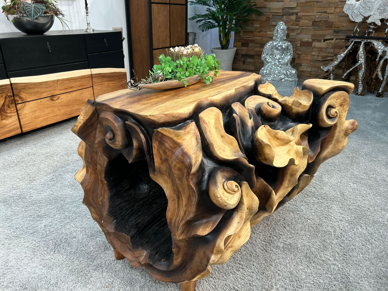 Sideboard "Geschnitzter Baumstamm" 102 x 67-100 x 79 cm aus einem massiven Suarholz Baumstamm